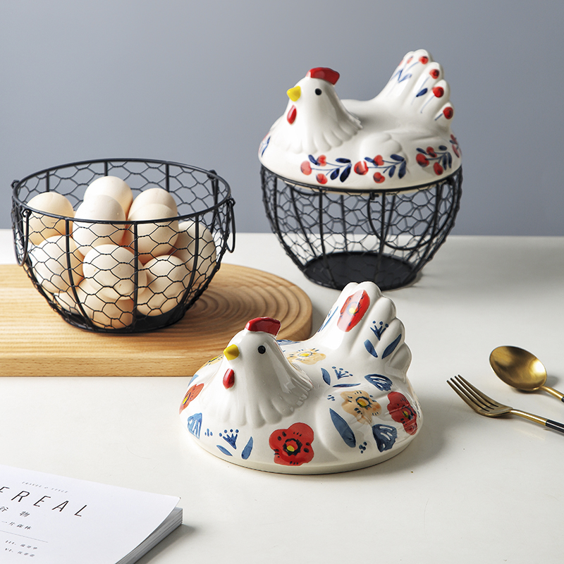 Hen Shaped Iron Basket Egg Storage Basket Creative Fruit Basket Pastoral Dried Fruit Basket Garlic Cage