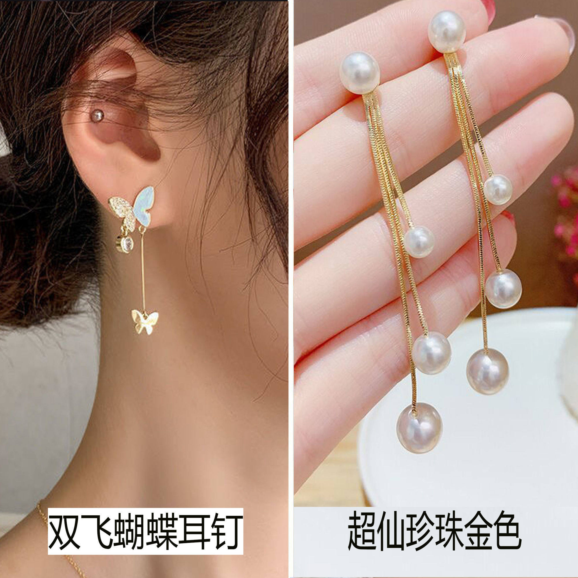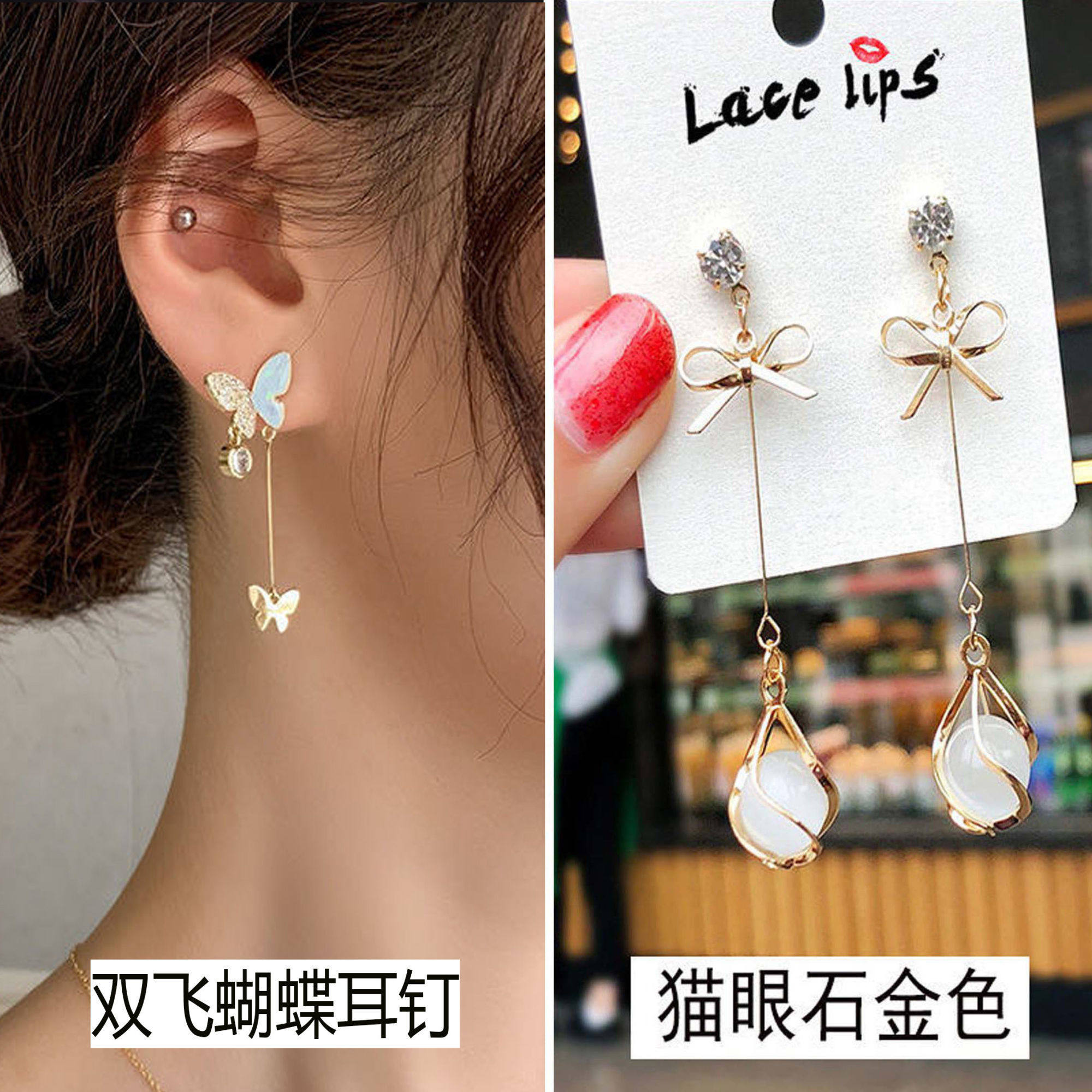 Long version s925 silver needle butterfly earrings female 2020 new wave Han version Temperament Senior Sensation Student Personality Earrings