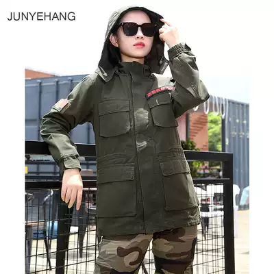 Spring and Autumn Military Green Women's Coat Outdoor Casual Loose Large Size Jacket Fashion Multi-Pocket Hooded Jacket
