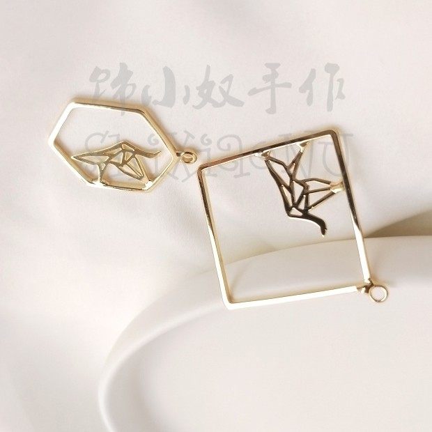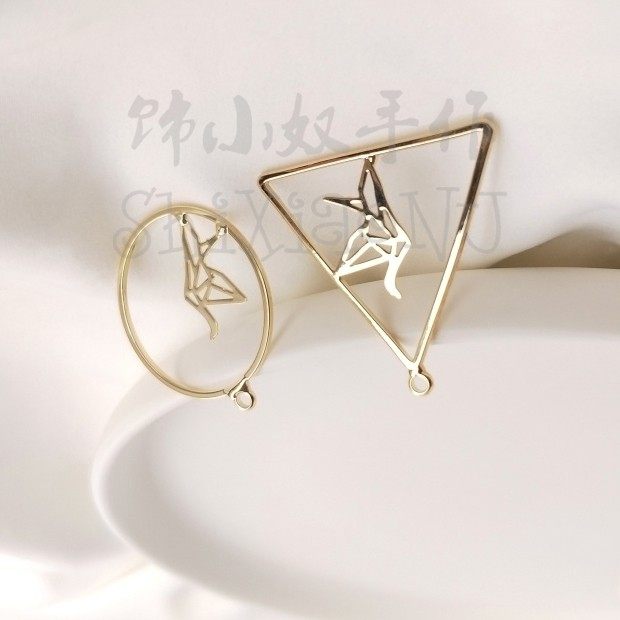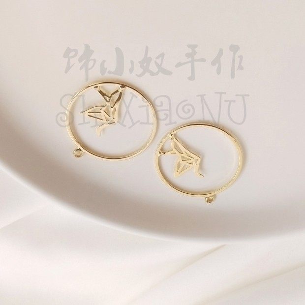 Color-preserving 14K light gold geometric shape accessories thousand paper crane earrings accessories diy jewelry earrings pendant material