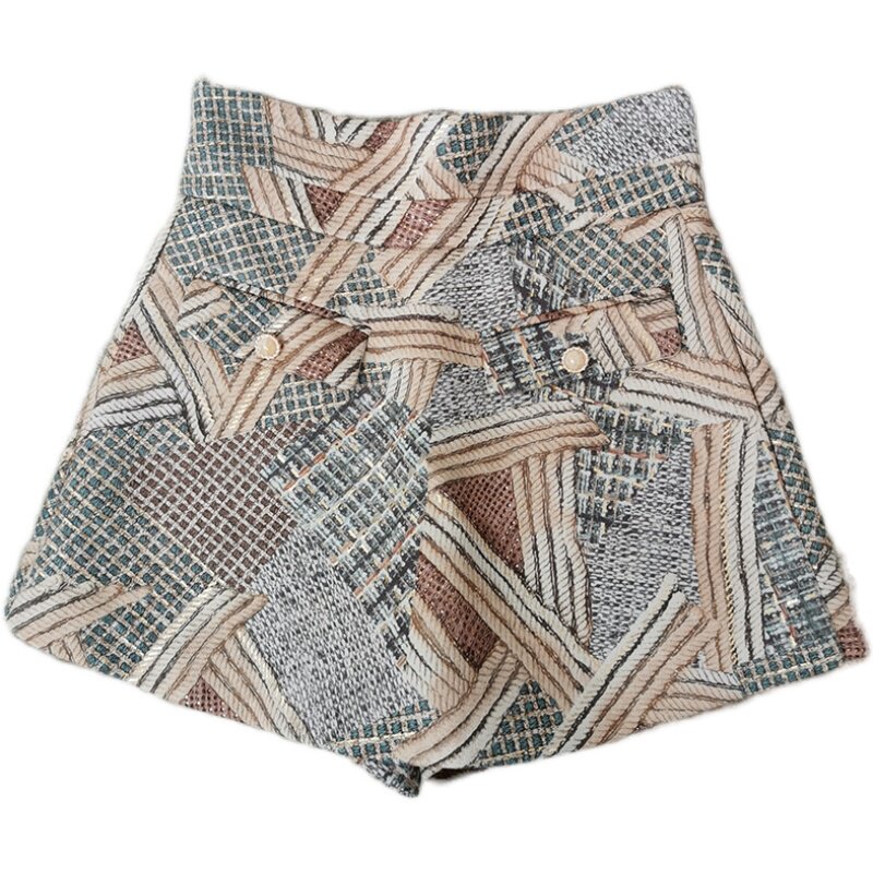 Word-of-mouth choice mid-level product anti-slip check high-waisted A-line skirt pants women's slim skirt