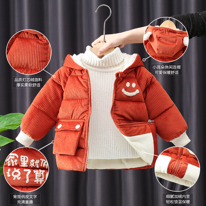 Boys' cotton clothes winter clothes 2022 new children's baby winter cotton clothes cotton jackets corduroy jacket plus velvet thickening