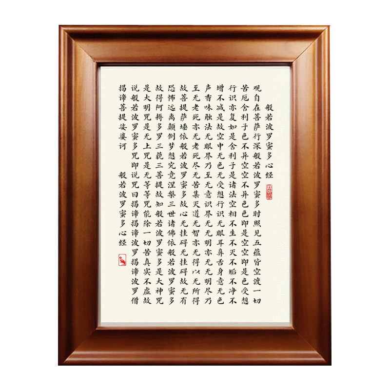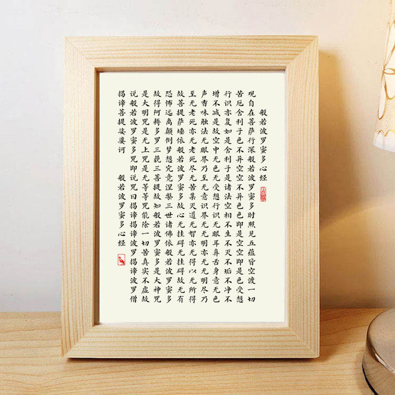 Prajna Paramita Heart Sutra Calligraphy Works Antique Small Letters Photo Frame Ornament Bedside Table Table Calligraphy and Painting Hanging Painting
