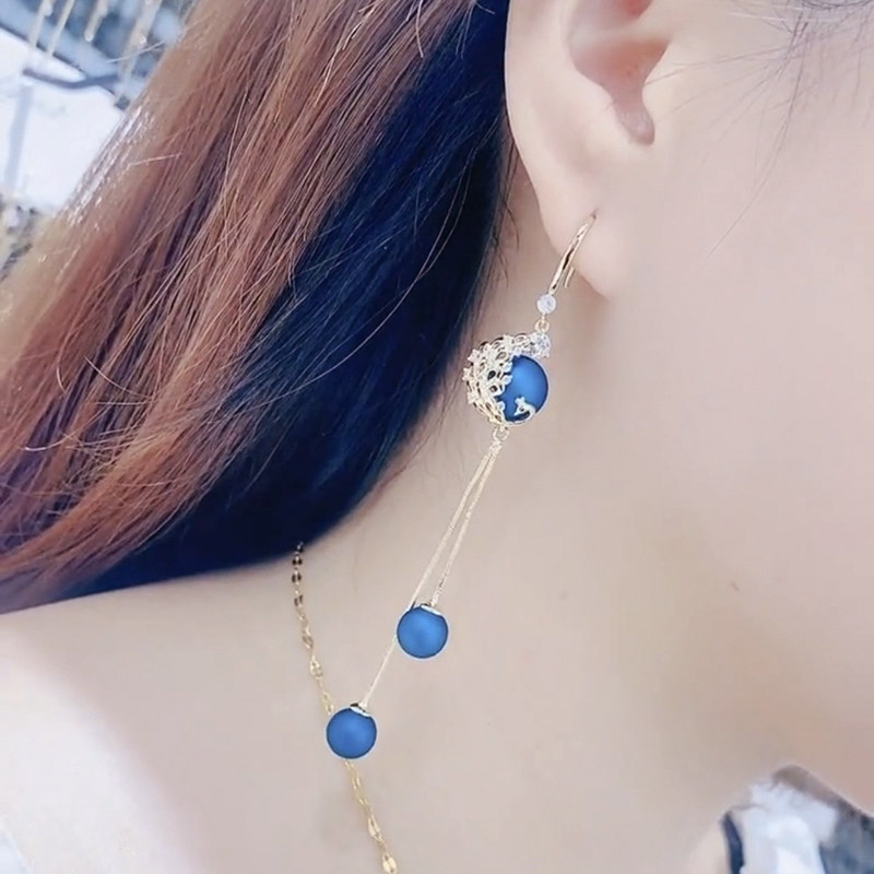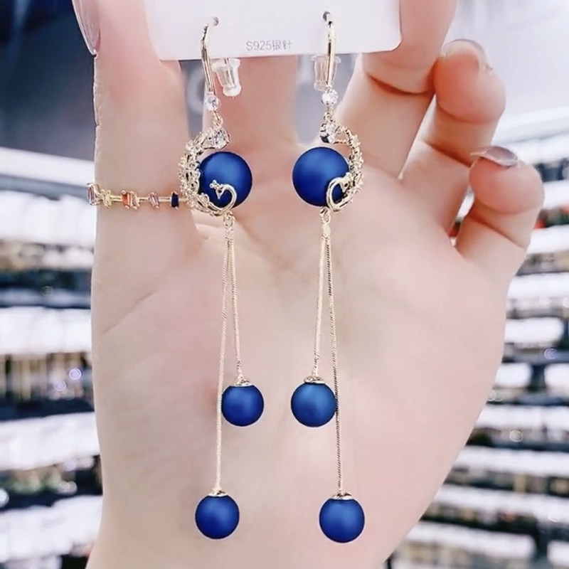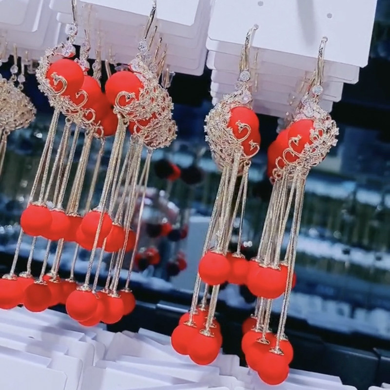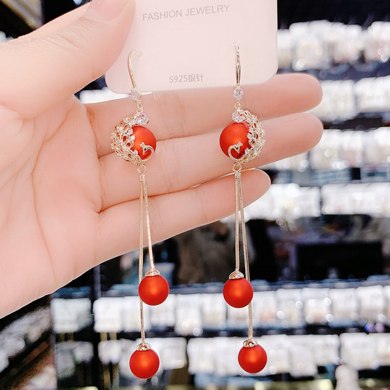 2020 new fashion niche design sense long peacock earrings female stream Su red pearl drop earrings bridal earrings