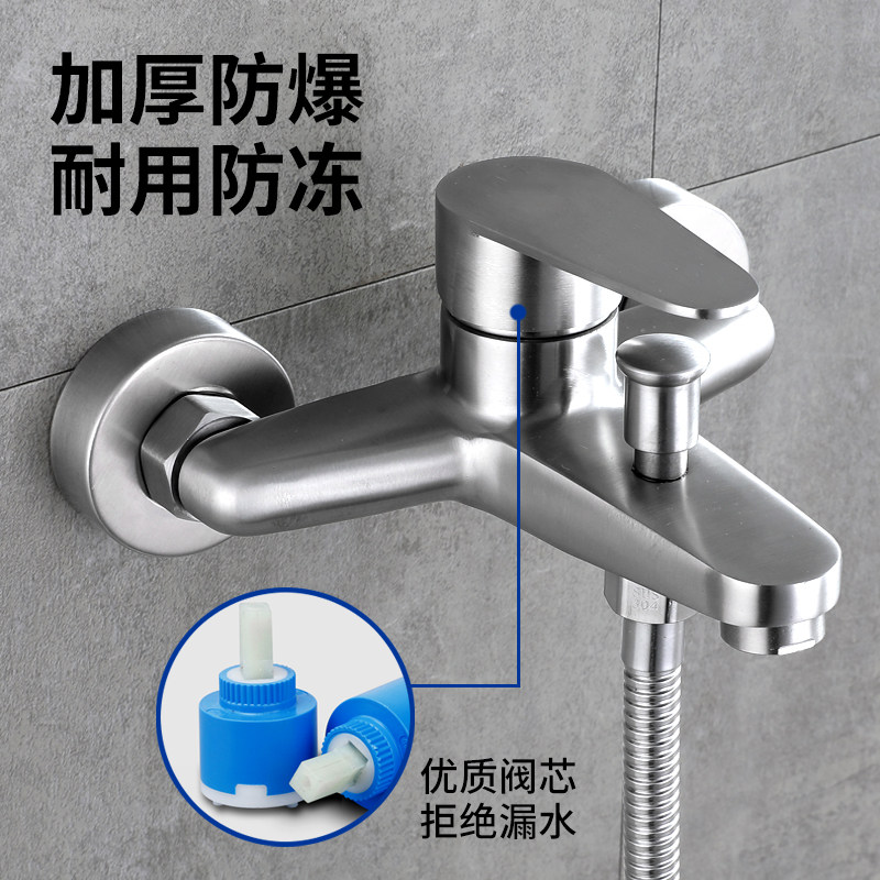 Hot and cold mixed water valve 304 stainless steel shower toilet shower shower dark triple bathtub hot and cold water faucet