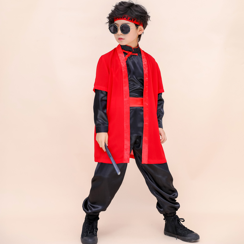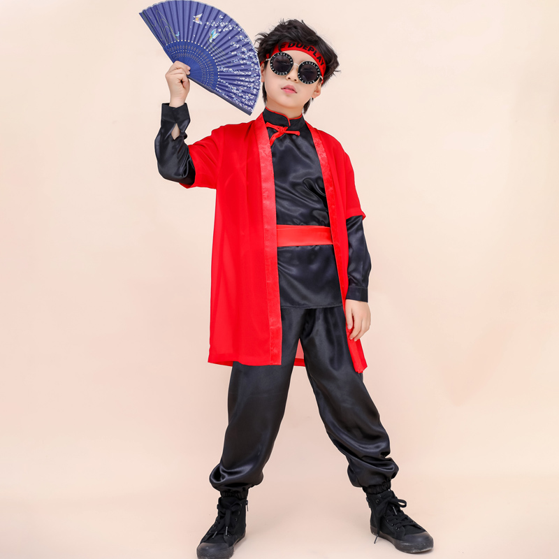 Children's Chinese style red theme costumes boys national tide catwalk costumes group children's street dance costumes New Year's Day