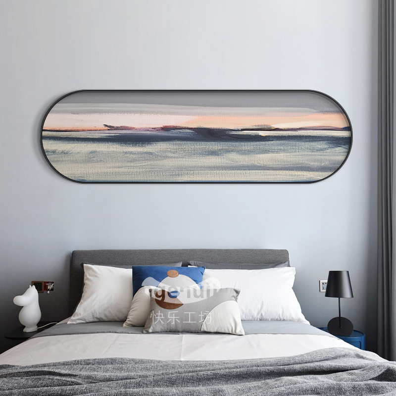 Bedroom bed head decorative painting Nordic living room background wall Abstract oil painting modern warm horizontal version of the room master bedroom hanging painting