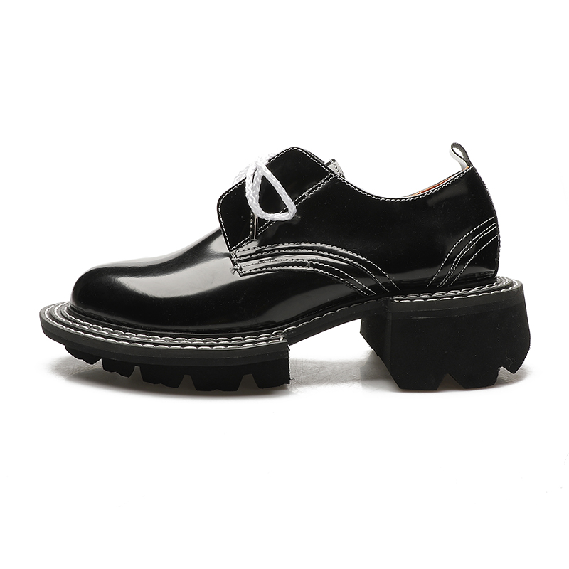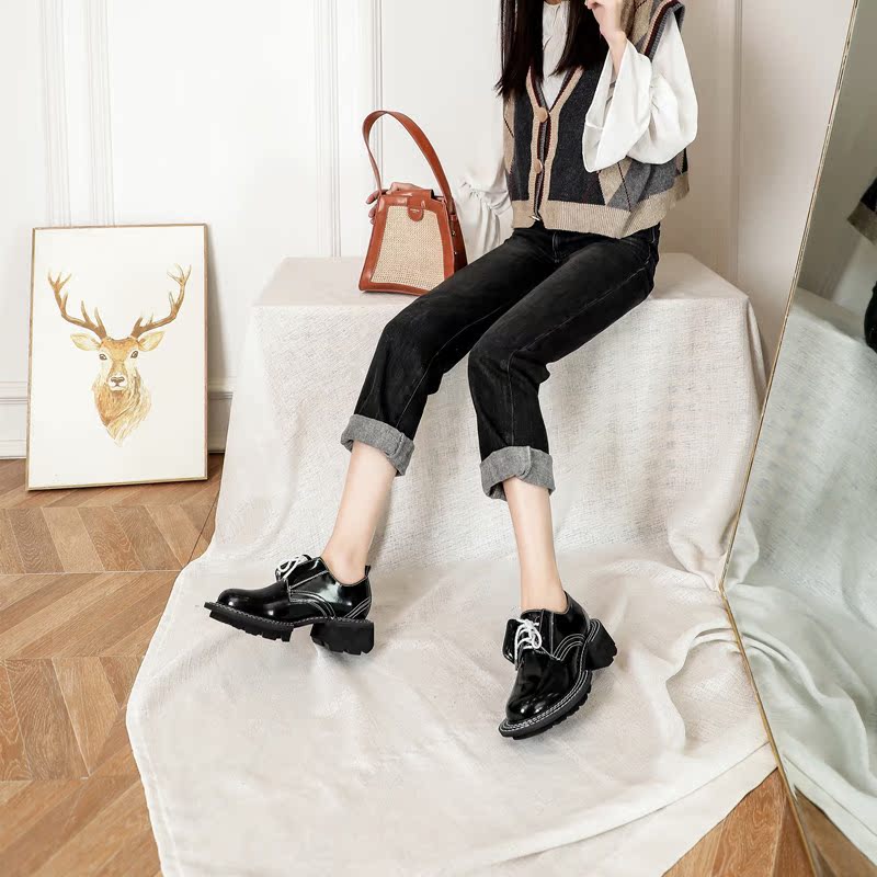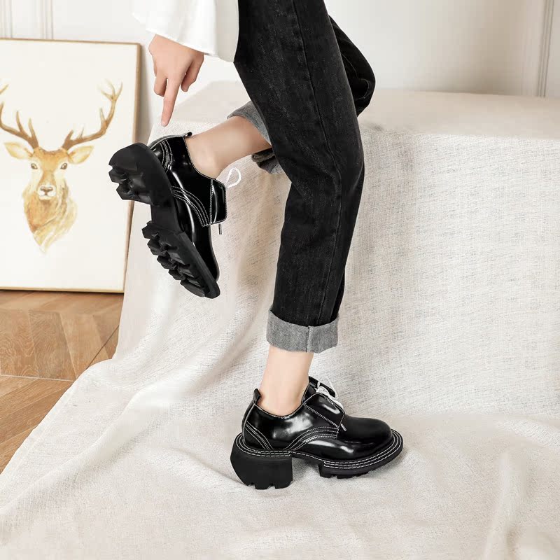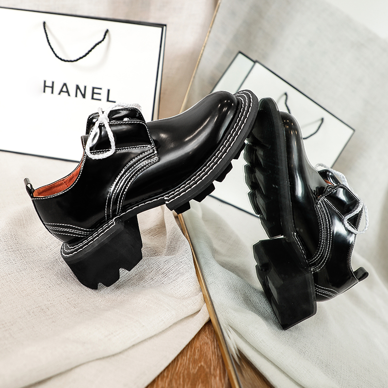 Lefu shoes 2021 new European and American style of a thick and thick sole leather shoes English wind and single shoes