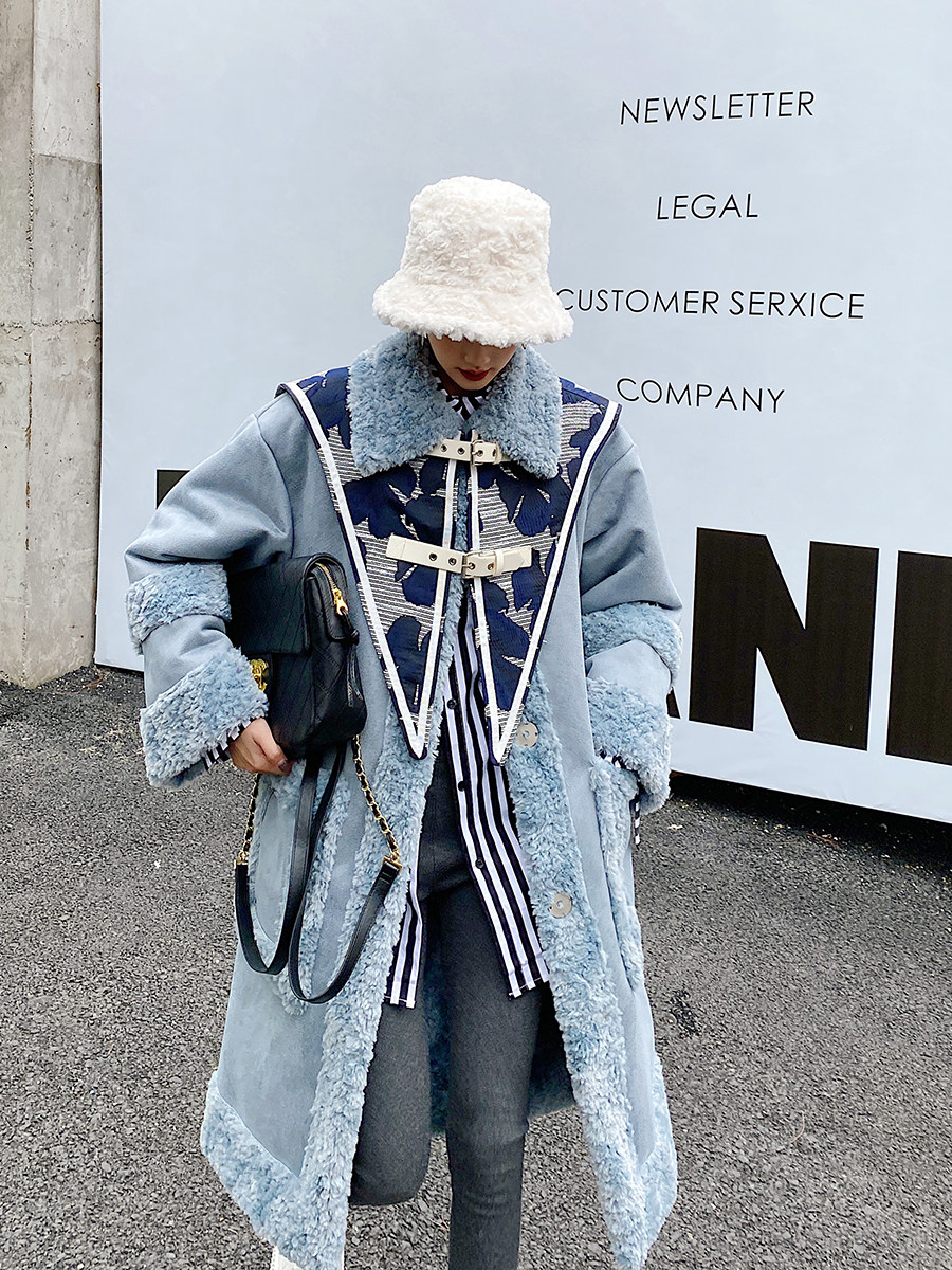 (Words wake up) jacquard shawl fog blue fur one coat female winter loose thin imitation fur coat