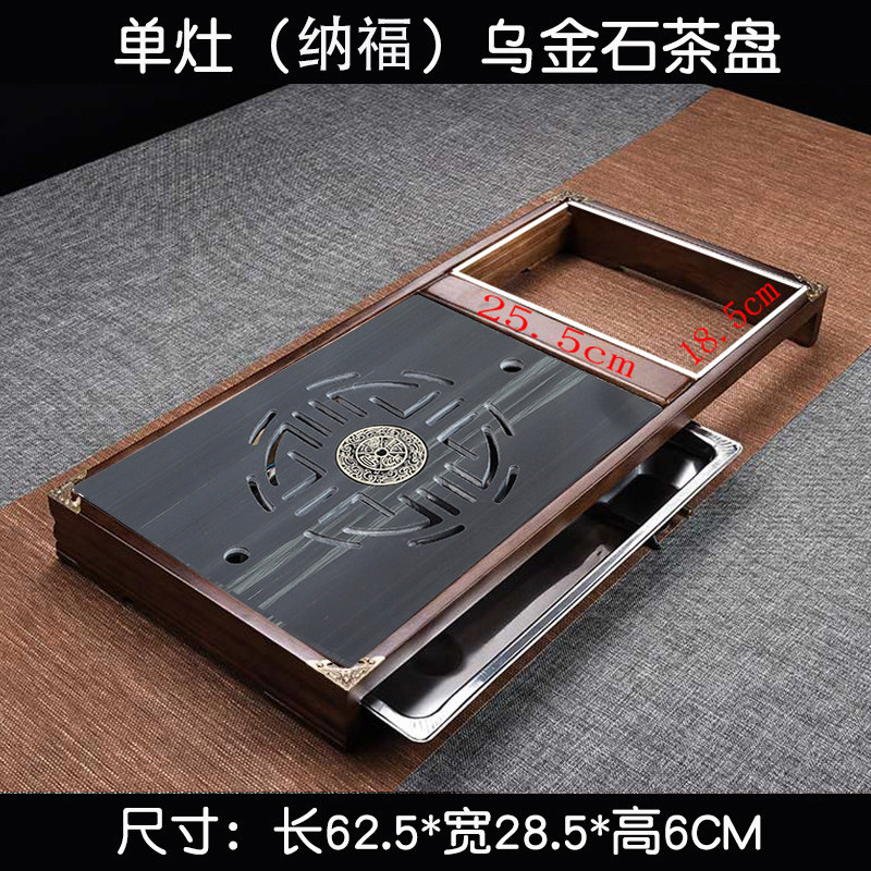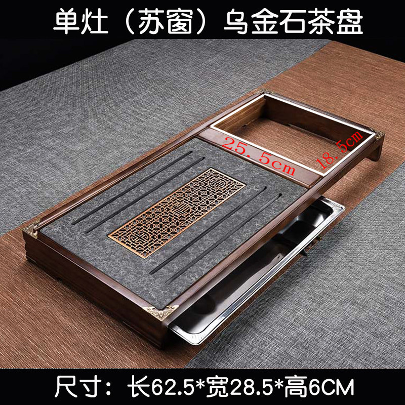 Light luxury modern stone Urjiu tea plate household stainless steel asphalt plate solid wood dry bubble