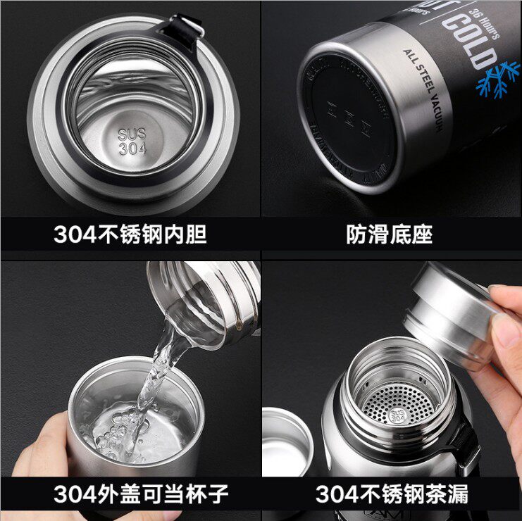 Full steel insulated cup men and women large capacity 1500ml Russian l304 stainless steel water glass kettle customised lettering
