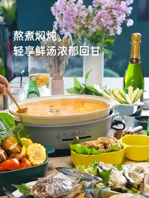 Japan bruno oval pot BOE053 Multi-function cooking pot Barbecue all-in-one household cooking fried fried electric hot pot