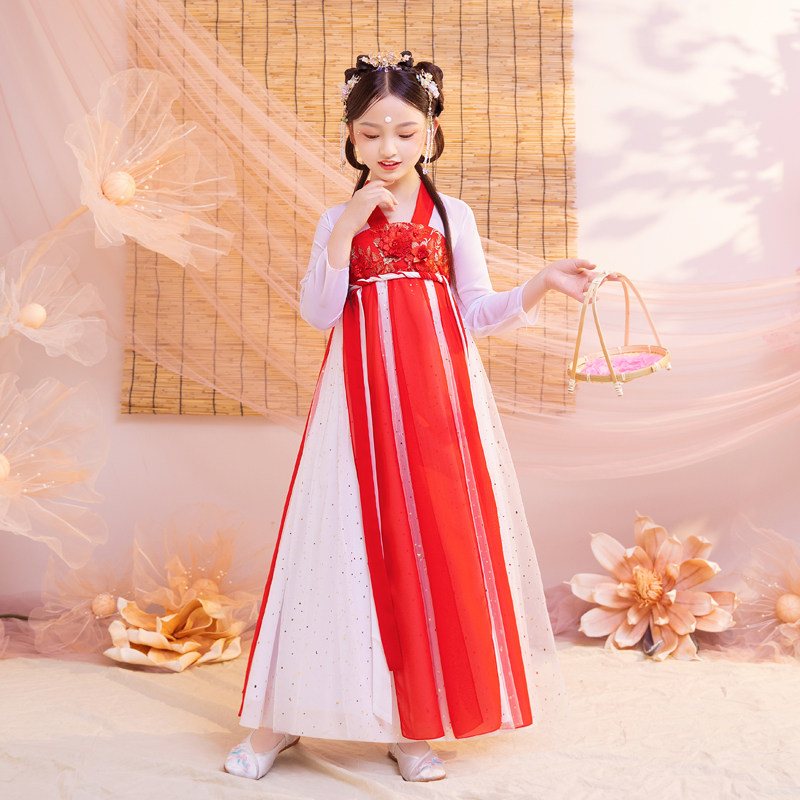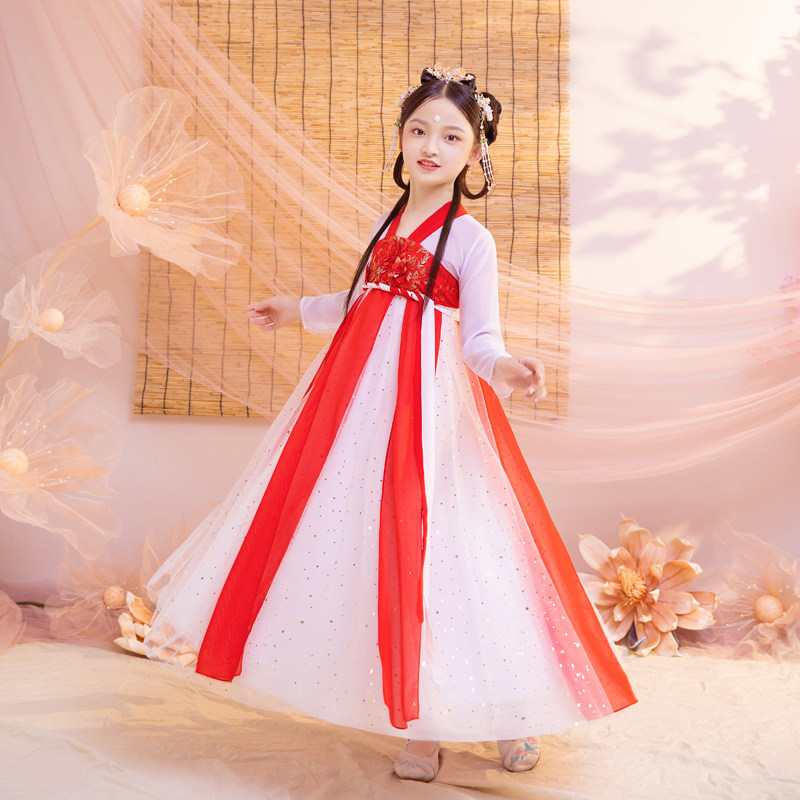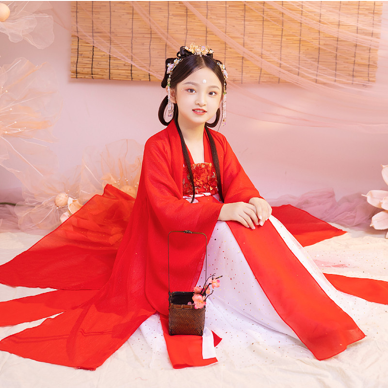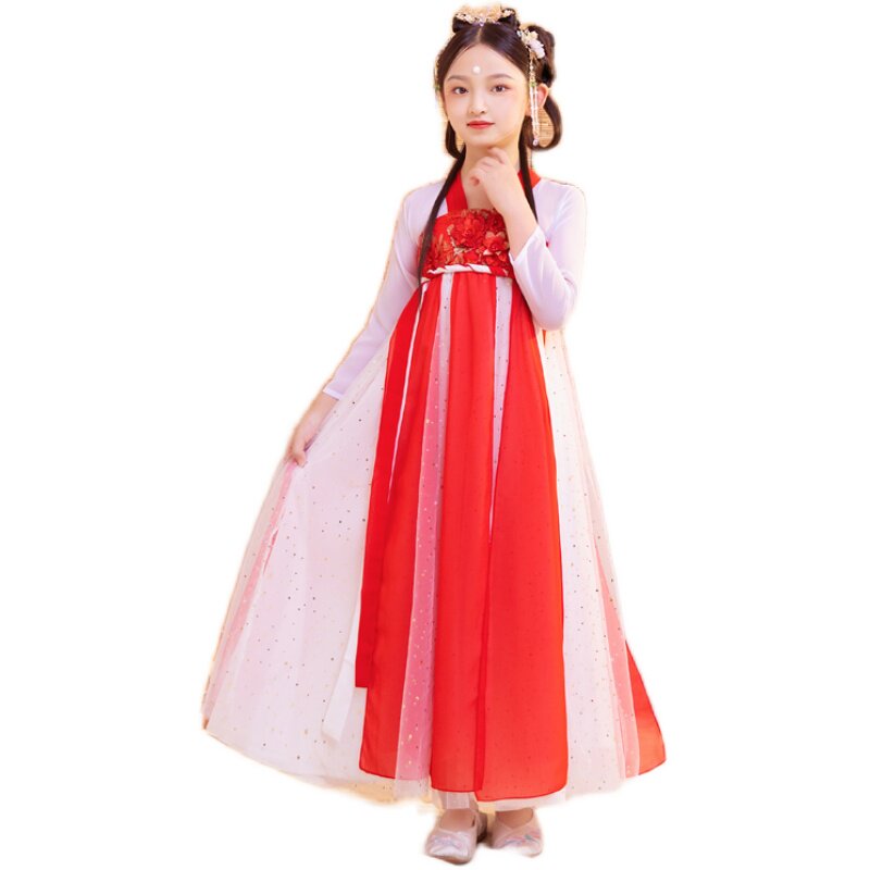 Girls Hanfu Super Fairy Skirt Children's Ancient Costume Long Sleeve Tang Suit Princess Chinese Wind Guzheng Costume Spring Outing Big Red