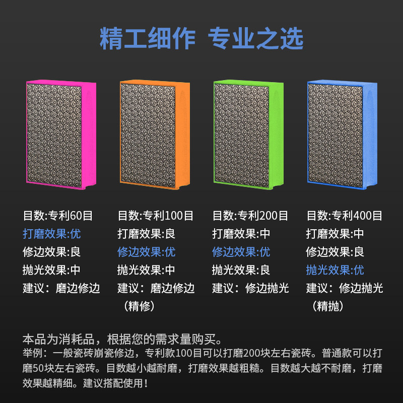 The more expensive the polishing effect the better wear-resistant are the same special 60 mesh (rock board) special 100 mesh (tile) special 200 mesh (glass) special 200 mesh (polishing) special 400 mesh (polishing use)