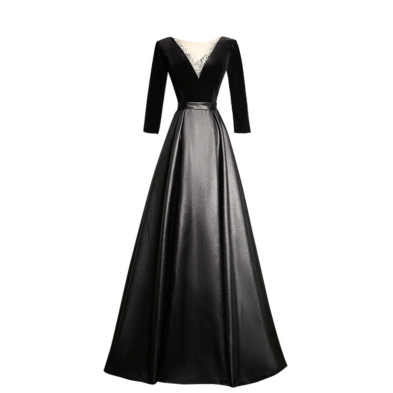 Black evening gown banquet 2022 new long version noble elegant sashimi host choir gown with long dresses