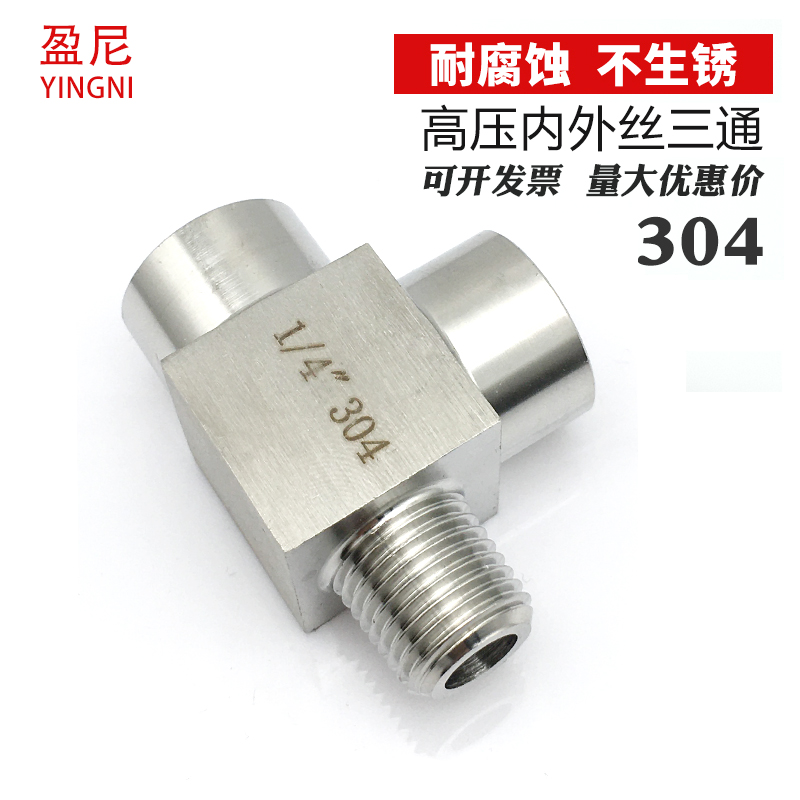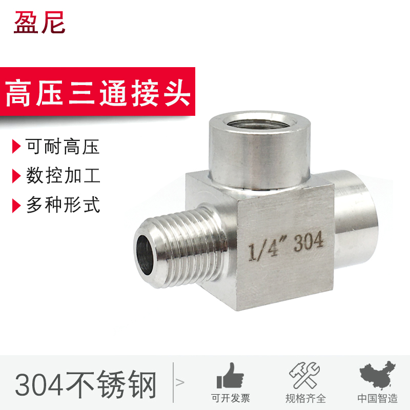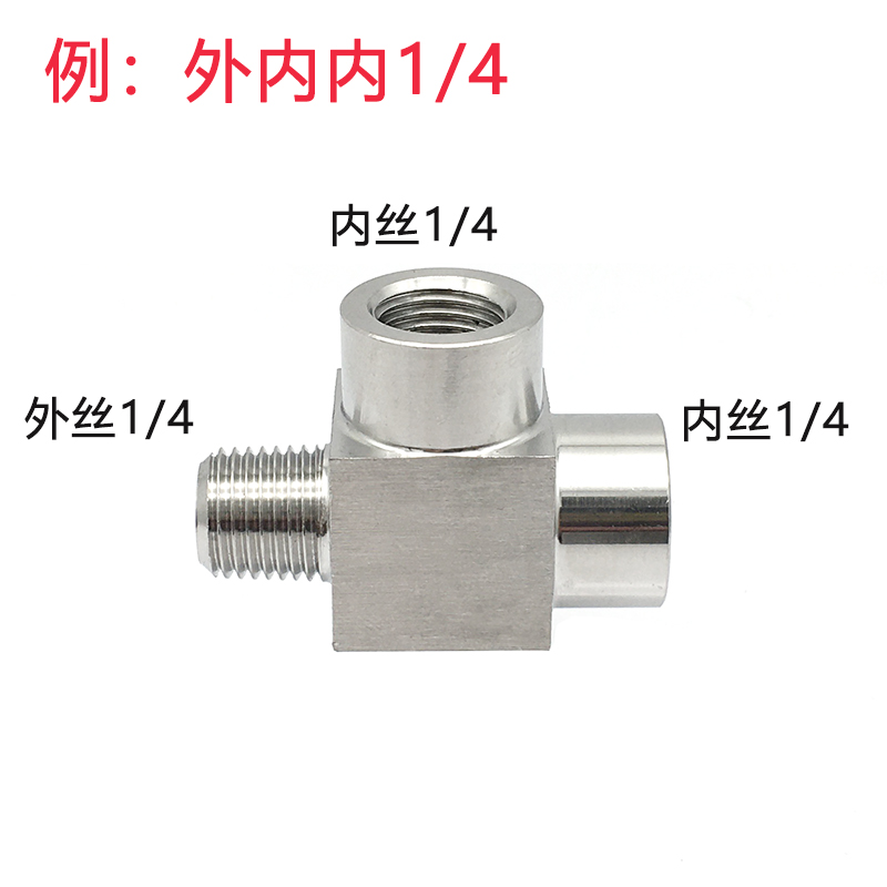 Stainless steel inner and outer wire tee joint 304 inner wire high pressure thickened external thread NPT tee 2 points M20 * 1.5