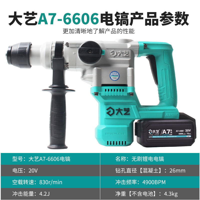 Great art brushless lithium electric hammer drill A7-6606 multifunction drill hammer electrically engaged dual-use industrial-grade concrete punching chisel