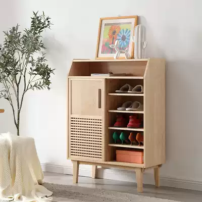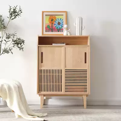 Solid wood shoe cabinet home Louver door large capacity simple modern 2 door sliding door Hall Cabinet Nordic entrance cabinet