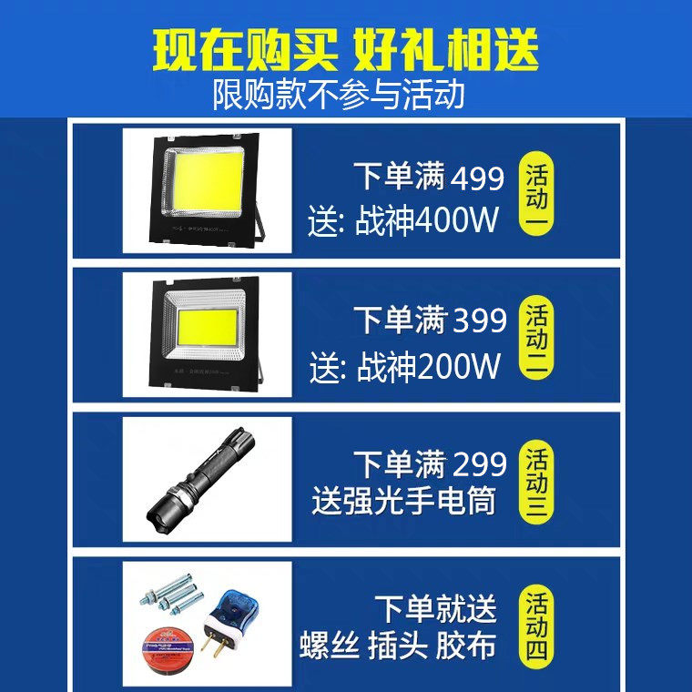 Super bright 100W limited to 1 set Super bright 200W limited to 1 bright light 100W limited to 1 bright light 200W limited to 1 set COB imported bright light 100W white light