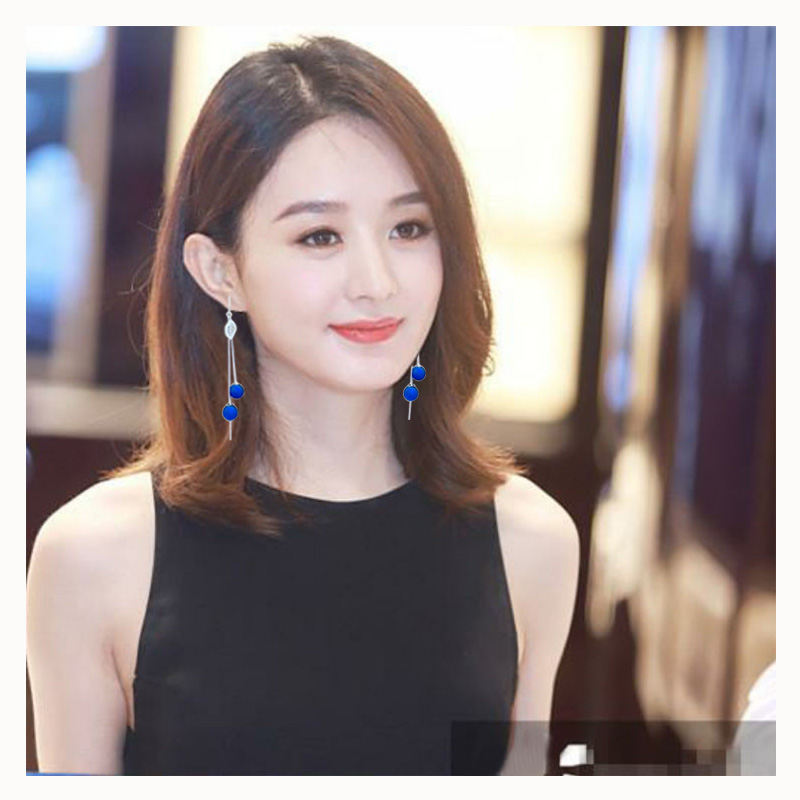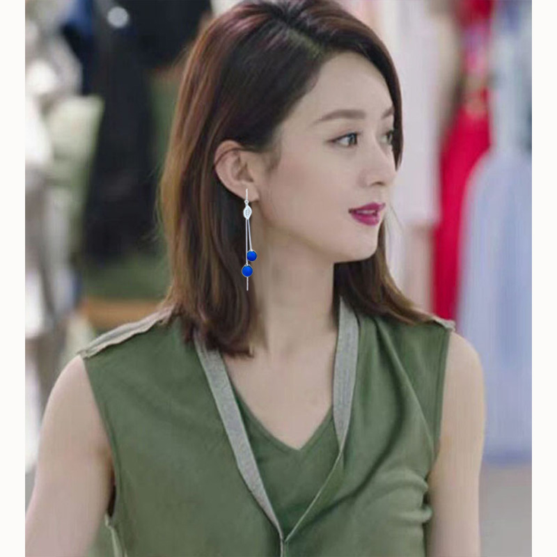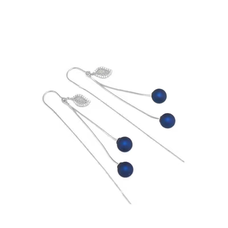 Flow Su Earrings Pure Silver Female Anti-Allergy Korea Temperament Net Red Blue Pearl Earrings Long version of Leaf Advanced Ear Necklace