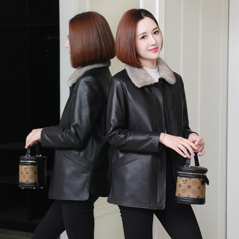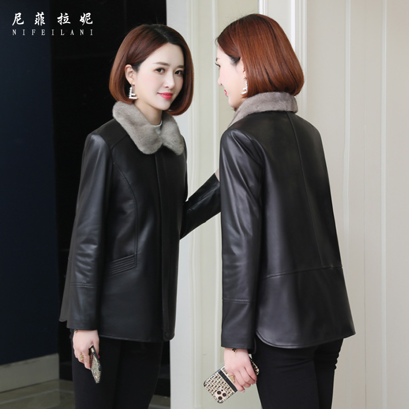 Clear Barn Handling Genuine Leather Down Clothing Woman Short of winter Large size Sizes Middle-aged Mom Leather Grass Fur Coat Sheep Leather Jacket Jacket