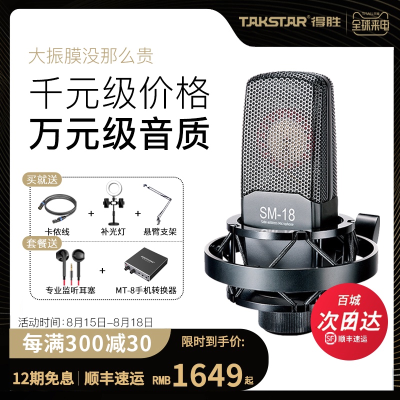 DSM - 18 capacitor microphone Cell phone sound card set Universal professional audio - recording studio grade large vibration film