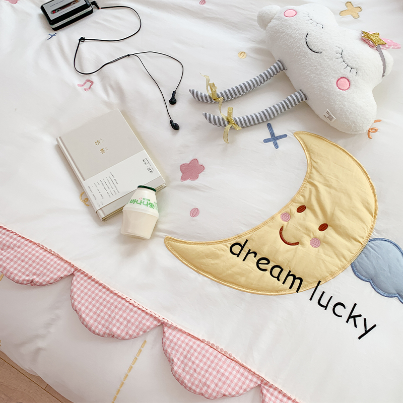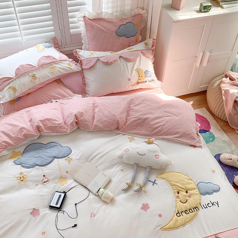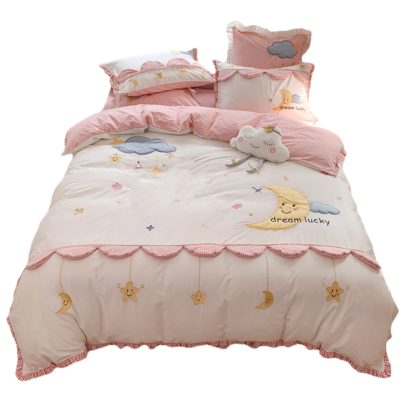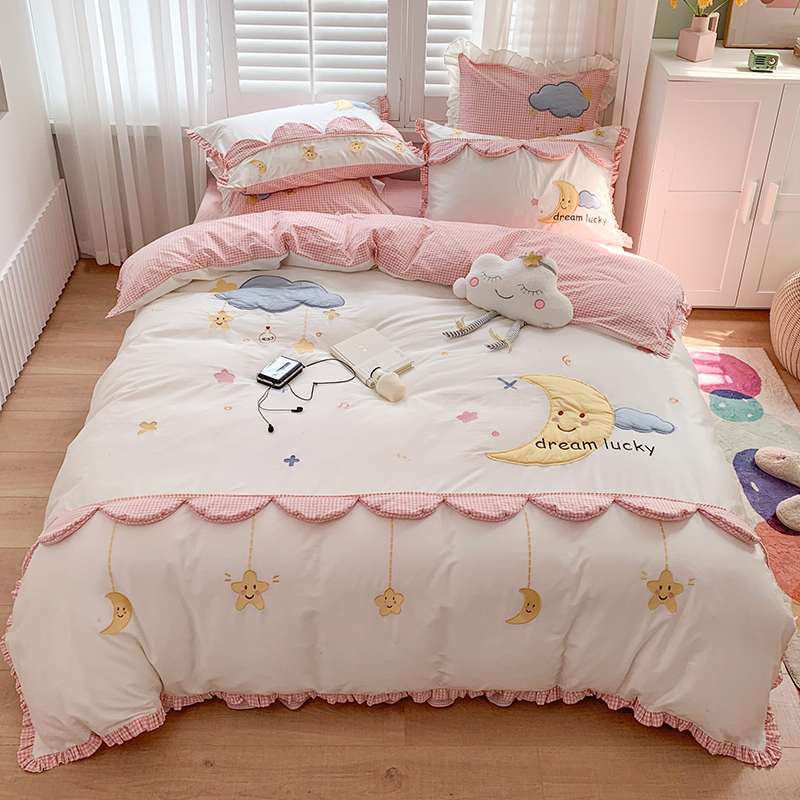 (Rich Mountain Strawberry) Lovely Girl Hearts Full Cotton Four Pieces Of Pure Cotton Washed Cotton Princess Windy Cloth With Embroidered Quilt Cover