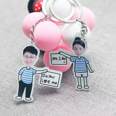 Net red acrylic photo couple keychain School bag cartoon pendant diy custom female creative cute gift