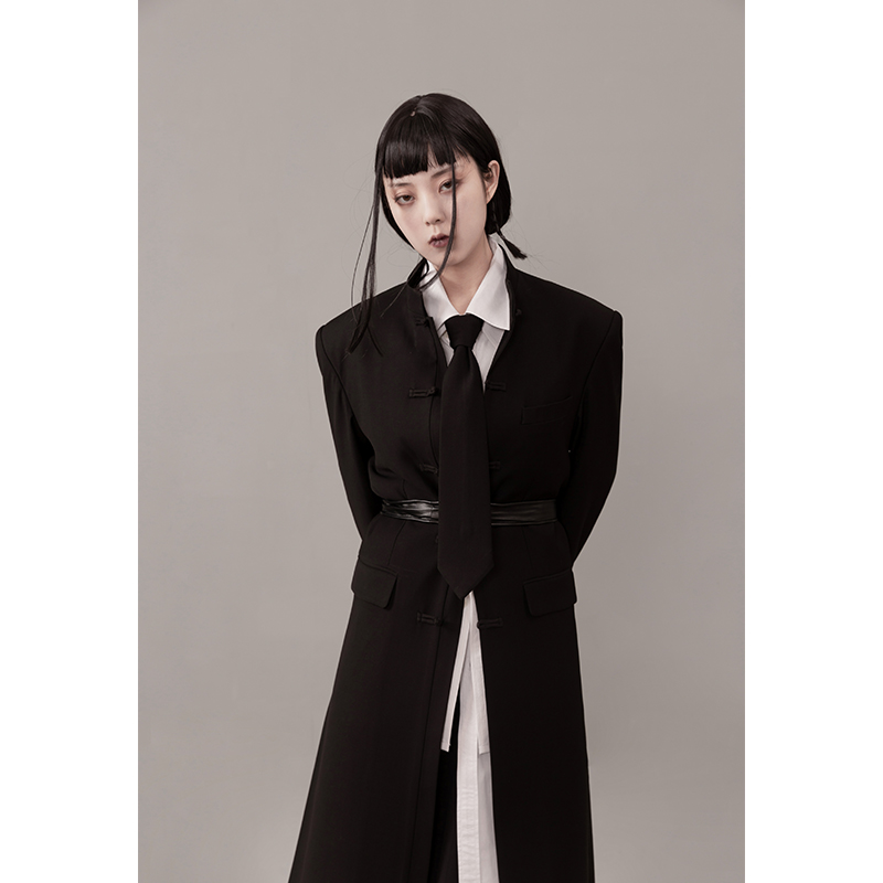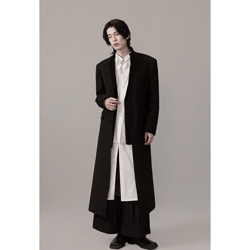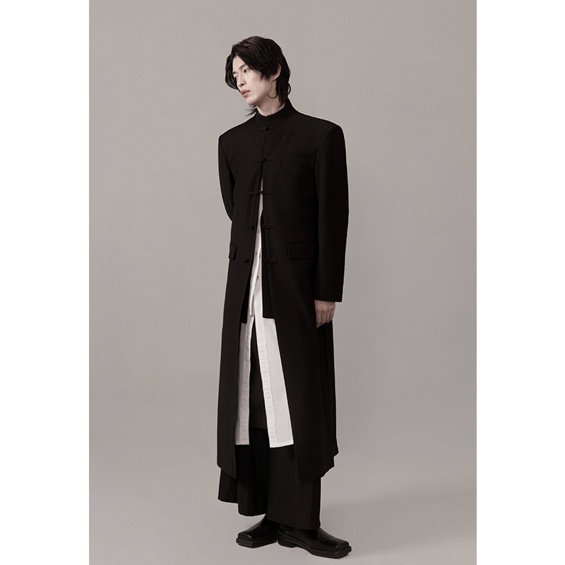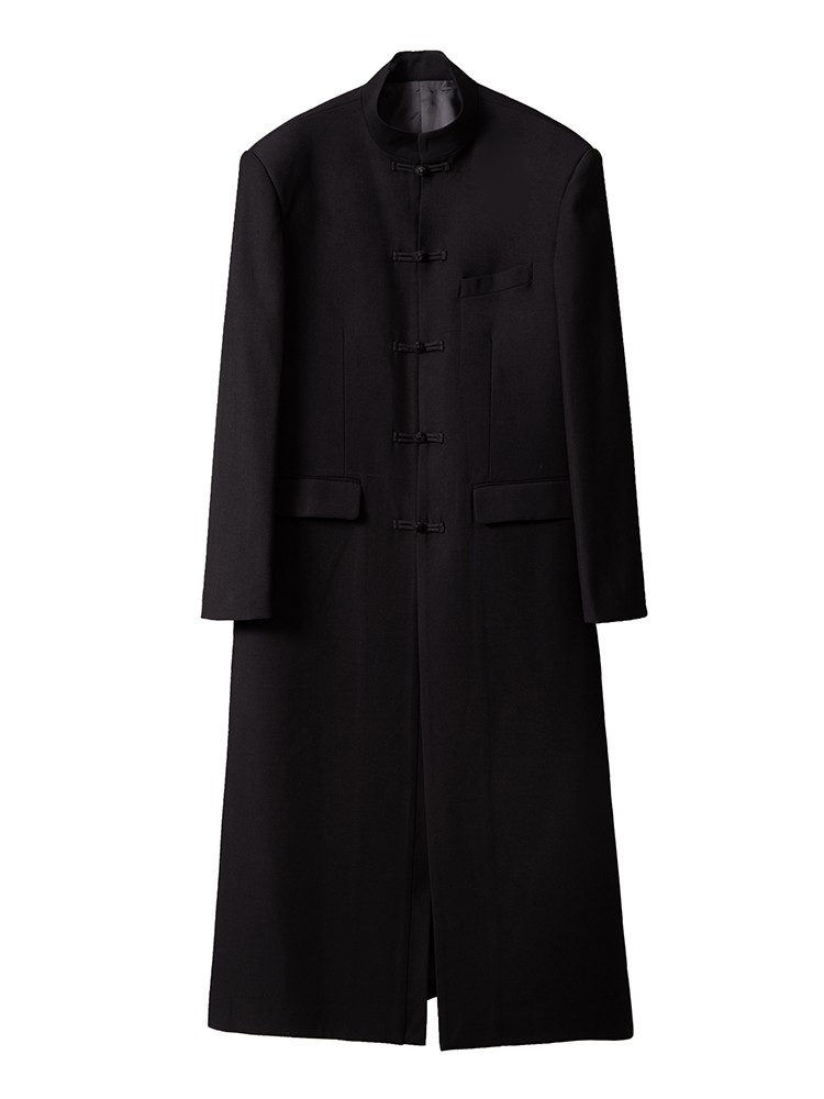 VAPOURBLUE original innovative Chinese style stand collar windbreaker autumn men's and women's high-end black casual mid-length coat