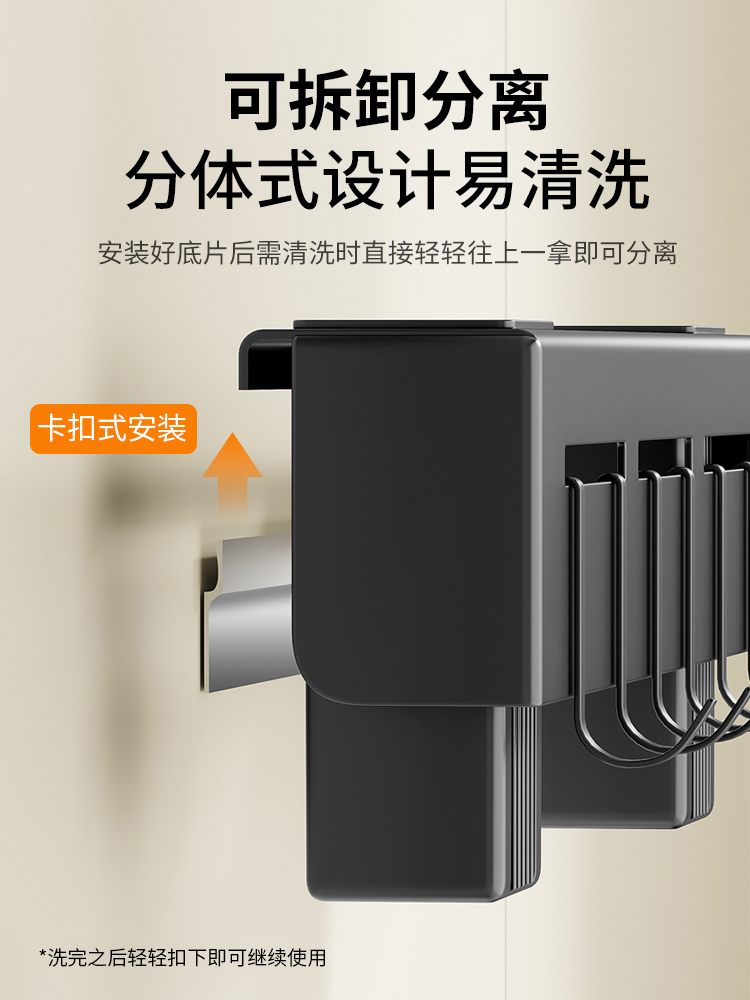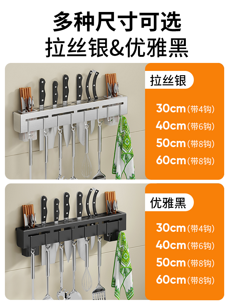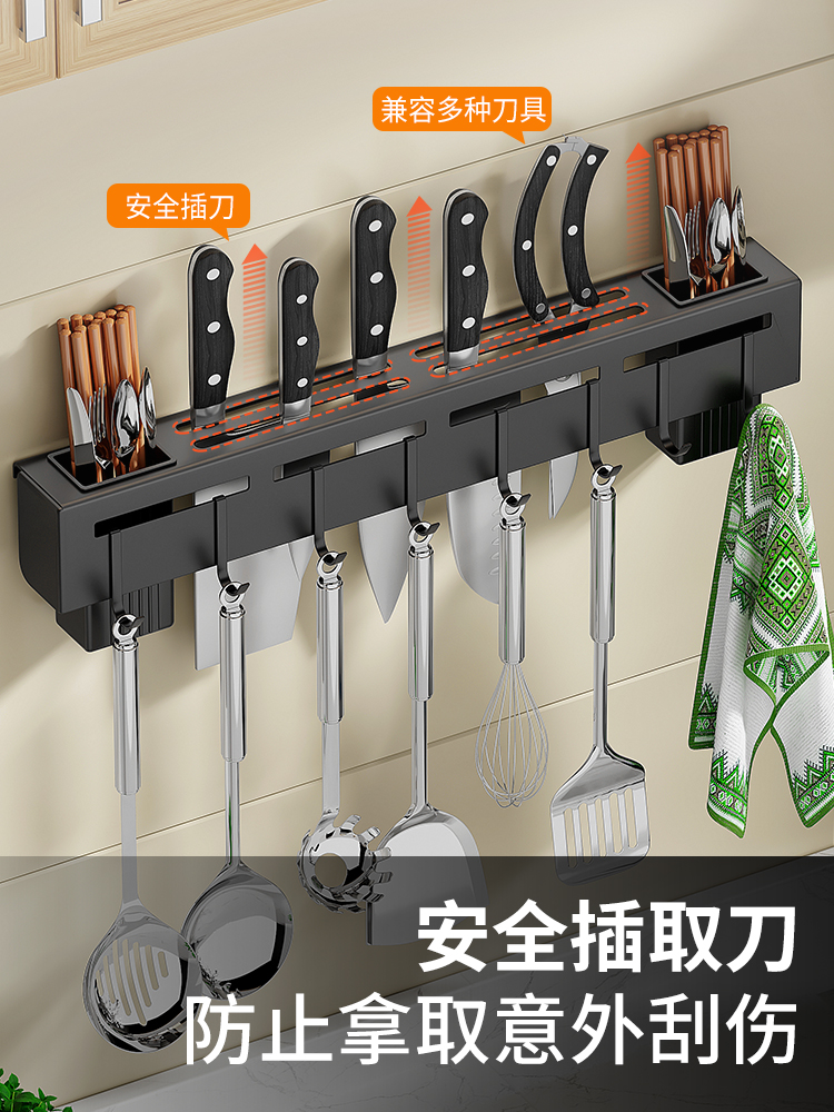 Elegant black 50CM (inserting knife, double chopsticks holder, storage, towel bar, 10 hooks)