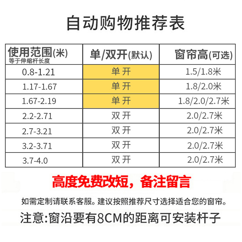 (White rod width range 0.8-1.21 m) Width 1.5 height 1.5 m 1 piece (white rod width range 0.8-1.21 m) Width 1.5 height 1.8 m 1 piece (white rod width range 1.17-1.67 m) Width 2.0 height 1.8 m 1 piece (white rod width range 1.17-1.67 m) Width 2.0 height 2.0 m 1 piece (white rod width range 1.17-1.67 m) Width 2.0 height 1 piece (White rod width range 1.67-2.19 m) Width 2.7 height 1.8 m 1 piece (white rod width range 1.67-2.19 m) Width 2.7 height 2.0 m 1 piece (white rod width range 1.67-2.19 m) Width 2.7 height 2.7 m 1 piece (white rod width range 2.2-2.71 m) width 1.8 height 2.0 m 2 pieces (white rod width range 2.2-2.71 m) width 1.8 height 2.7 m 2 pieces (White rod width range 2.71-3.21 m) Width 2.3 height 2.0 m 2 pieces (white rod width range 2.71-3.21 m) Width 2.3 height 2.7 m 2 pieces (white rod width range 3.21-3.71 m) Width 2.7 height 2 pieces (white rod width range 3.21-3.71 m) Width 2.7 high 2 pieces (White rod width range 3.71-4.0 m) Width 3.0 height 2 pieces (Send white rod suitable for wide range 3.71-4.0 meters) width 3.0 height 2.7 meters 2 pieces
