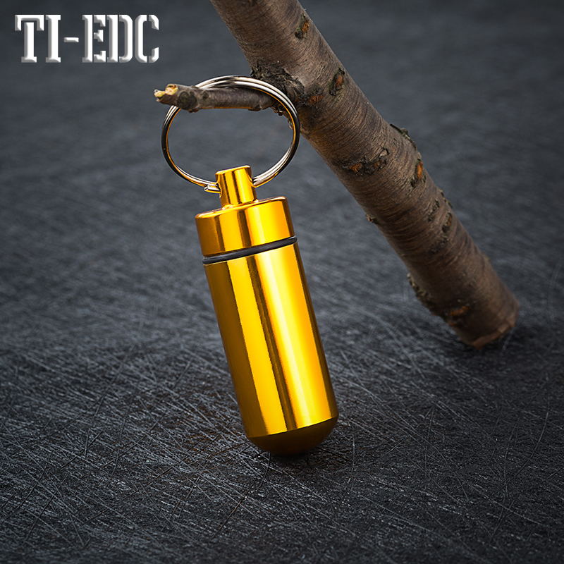 Aluminum alloy portable medicine box for old man with small bottle sun-style sealed medicine jar key hanging buckle waterproof tank