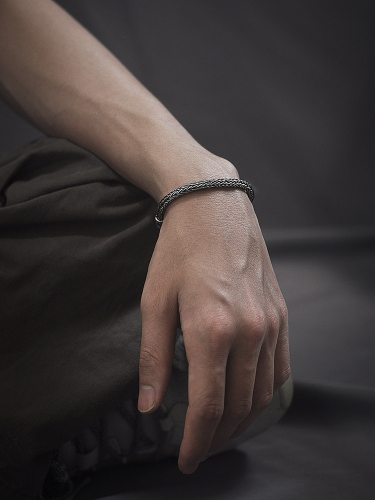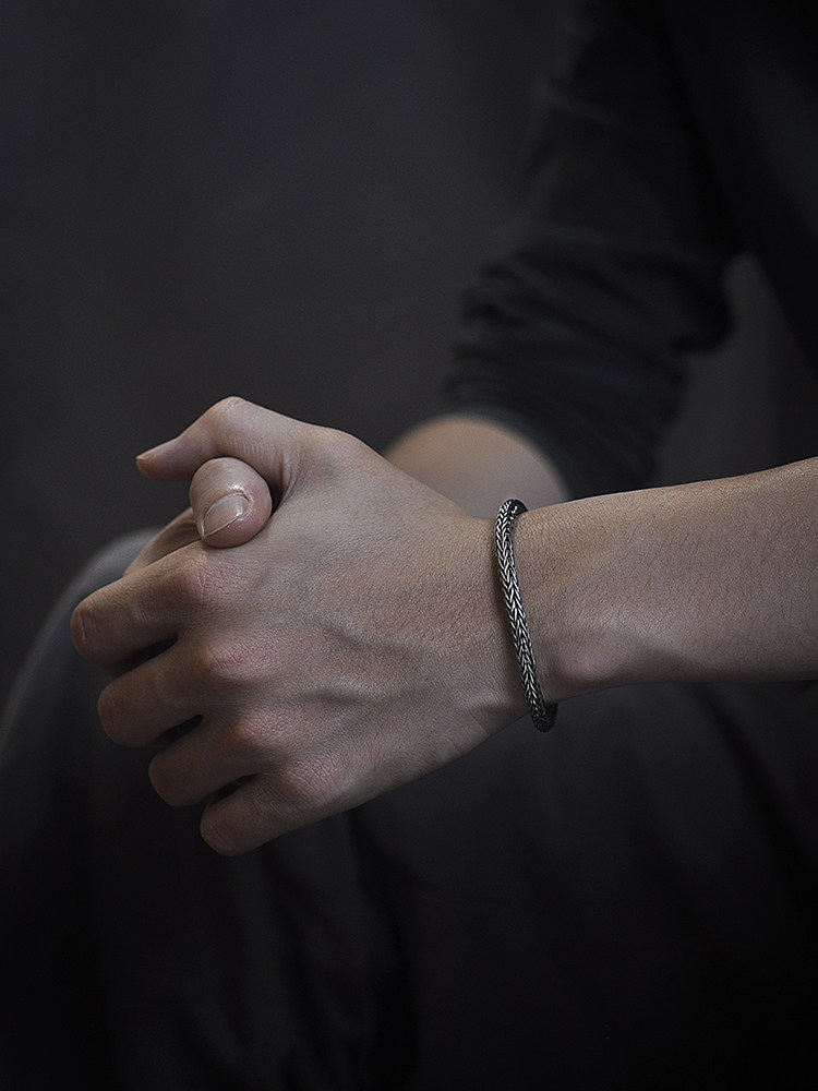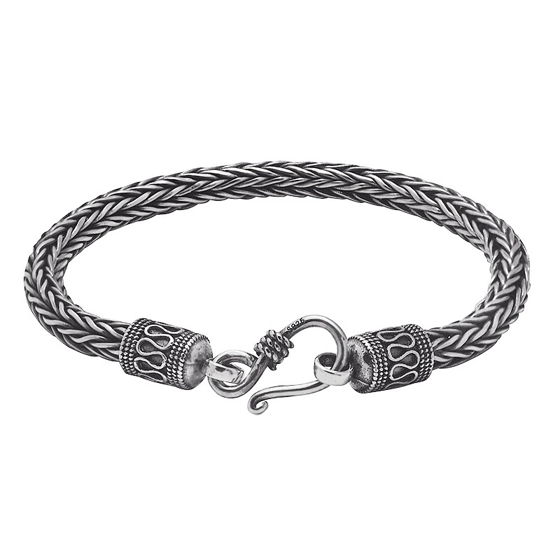 s925 pure silver hand woven bracelet Thai silver retro individuality keel male wave small crowdsourced design art lovers handmade