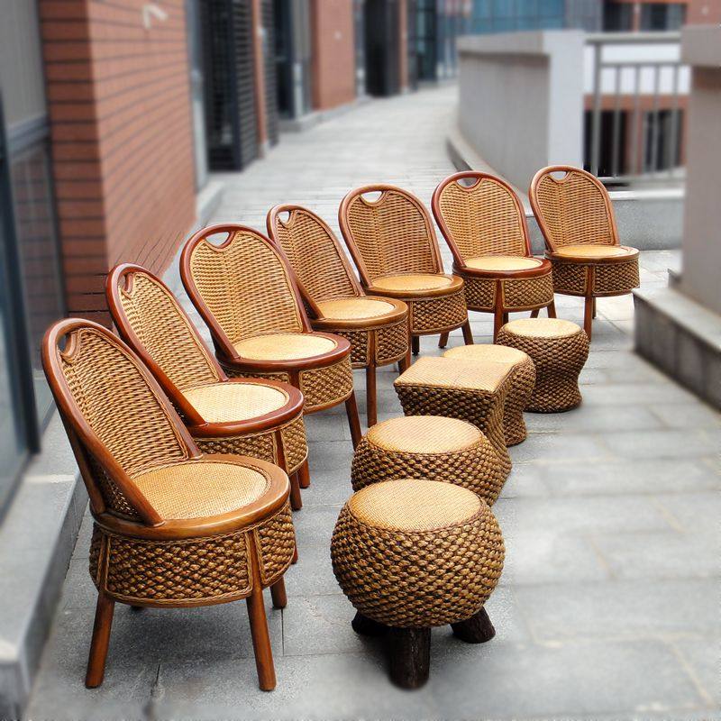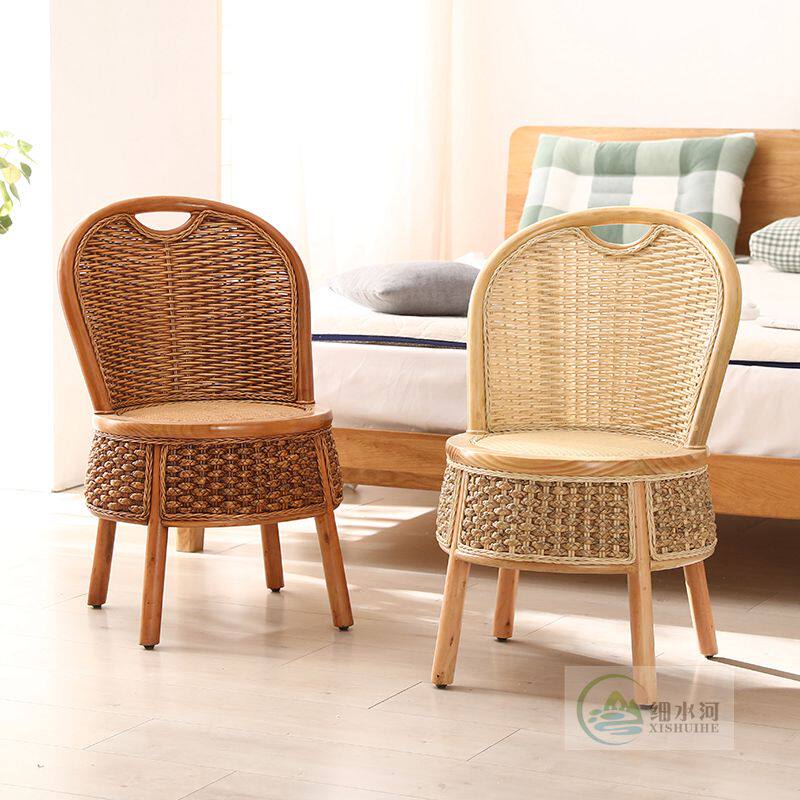 Natural vine chair chair chair singles round stool household small chair leisure balcony chair solid wood