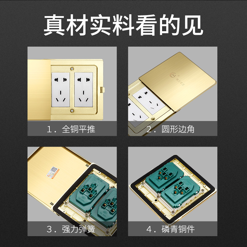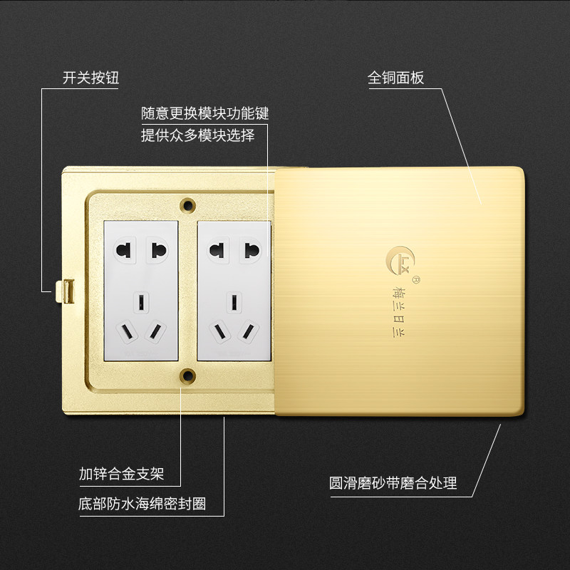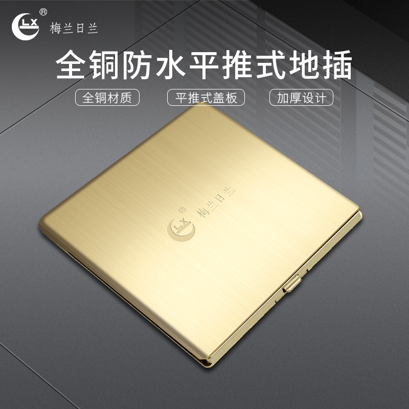 Melanzhlane socket all copper waterproof Flat push pull slide cover slim double five-hole power floor floor socket