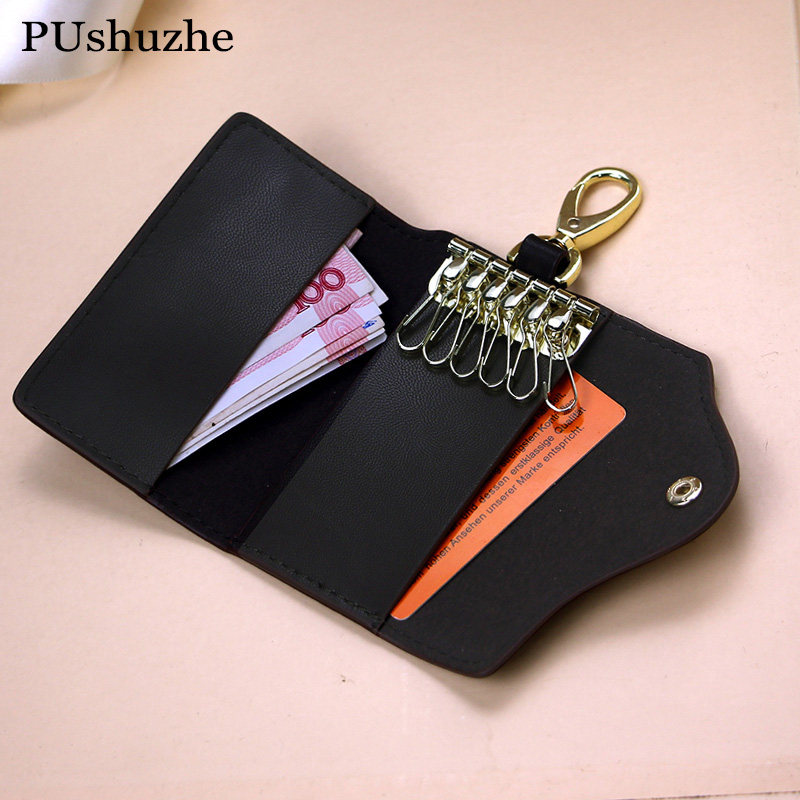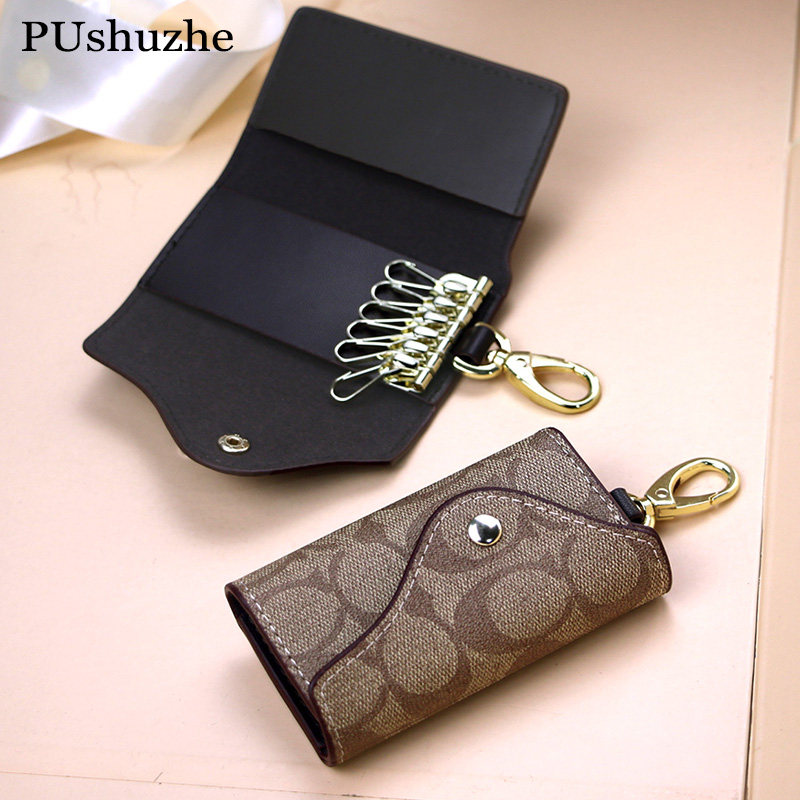 Female style leather car key bag large capacity pull chain male and female waist hanging domestic key bag button couple universal multifunction