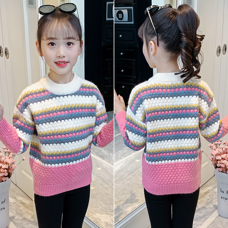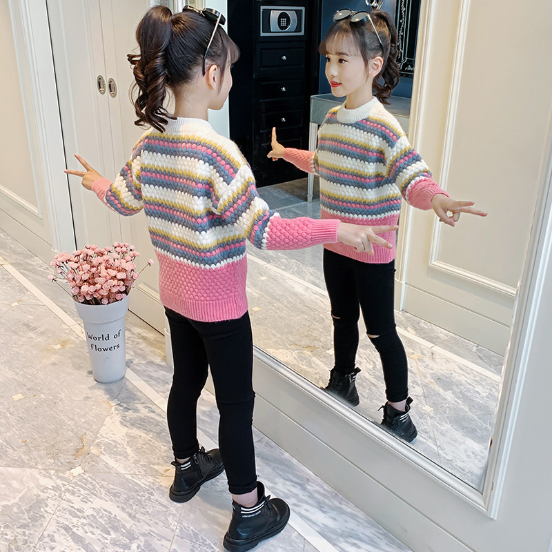 Girls sweater 2021 new spring dress foreign-style sweater children in the fashionable tampon fashionable tidal wave