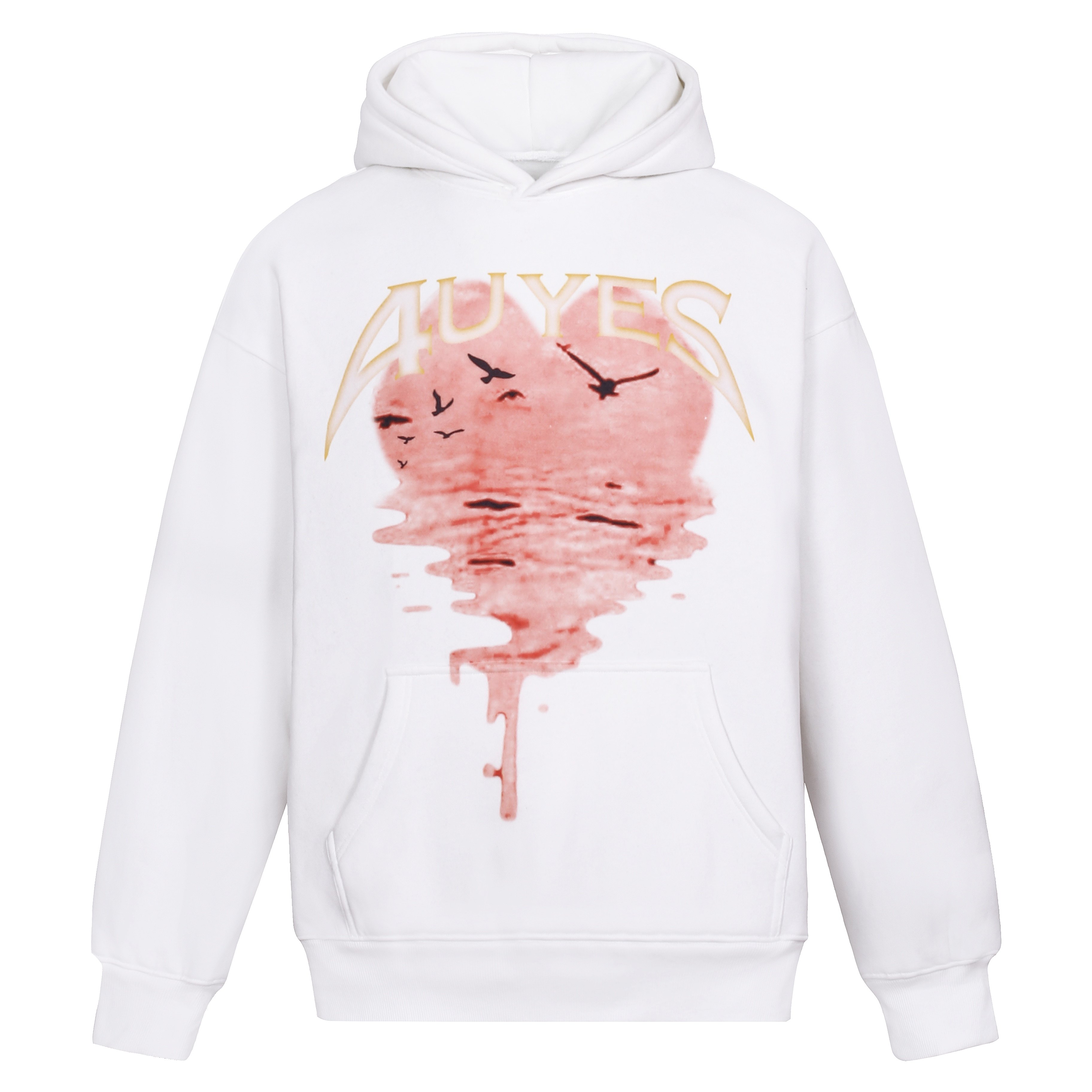 4UYES melt love sunset print sweatshirt men's and women's winter high street hip hop tide loose plush thick hoodie