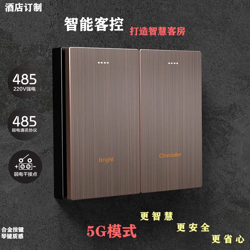 New smart hotel light control system switch controller metal wire drawing panel strong electric 485 weak electric dry contact