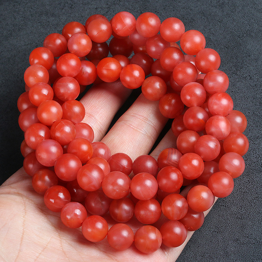 9 9-10 7mm162 90 grams of"Baoshan large diameter"round color Jianan red Agate multi-ring Buddha beads