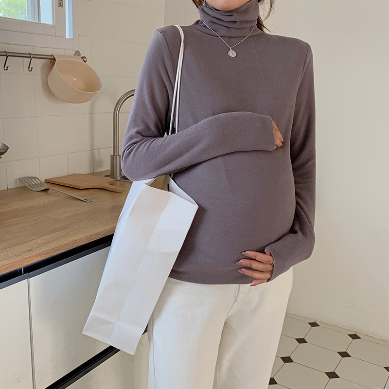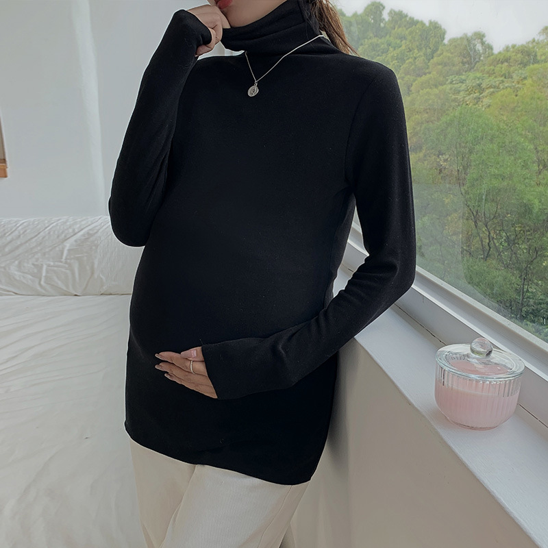 Pregnant women winter bottoming shirt women plus velvet thick inner T-shirt late pregnancy turtleneck top shirt autumn and winter bottoming