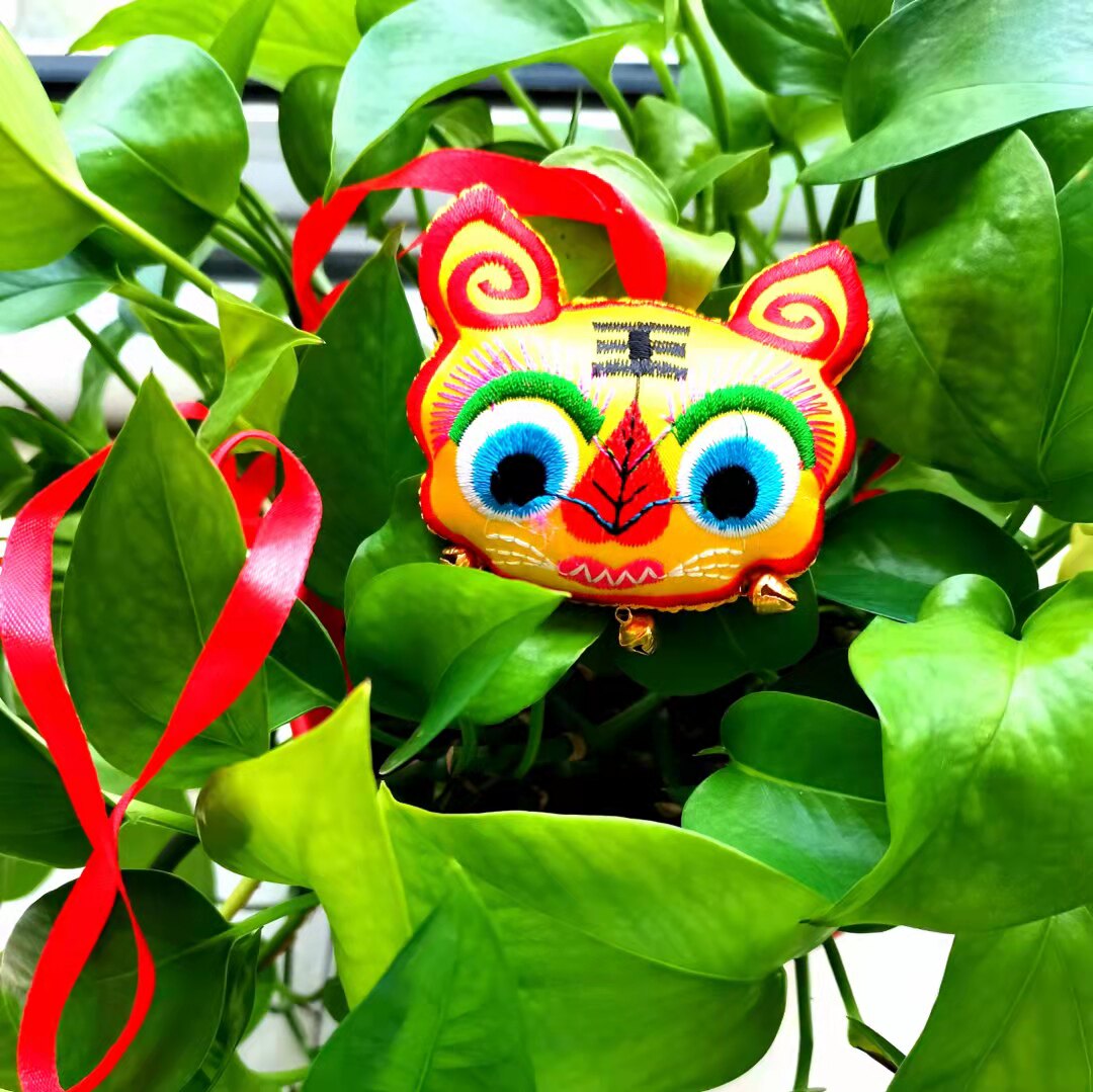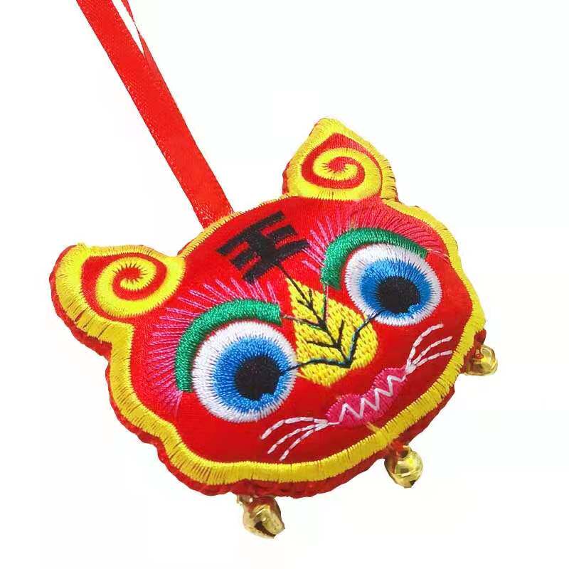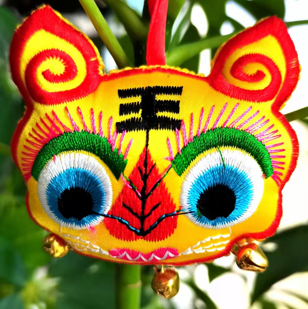 Red Tiger Head Embroidered Longevity Lock Ornament Yellow Tiger Embroidered Longevity Lock Ornament