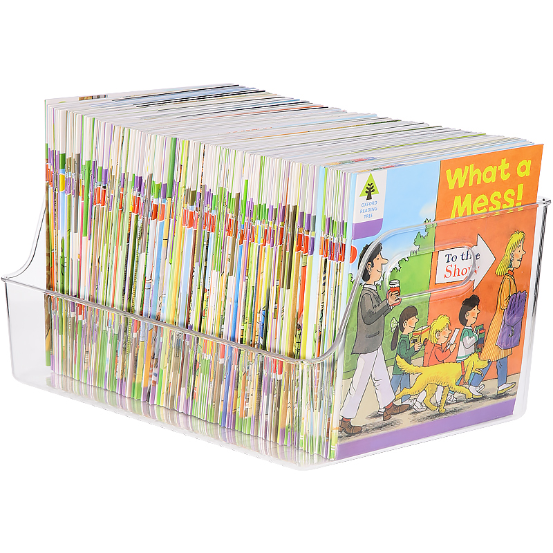 Book storage box Transparent storage finishing box Children's high school classroom table Oxford tree picture book basket book stand