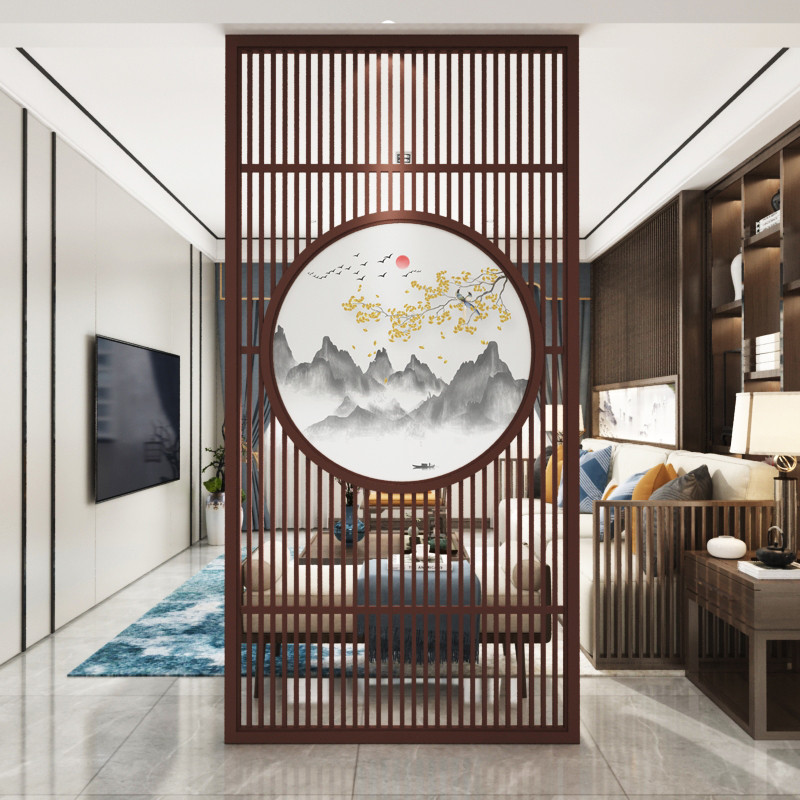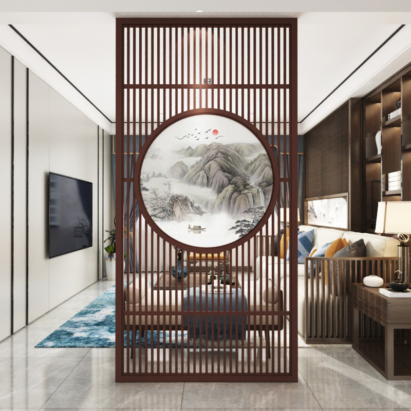 New Chinese custom solid wood screen partition wall living room entrance into the house Xuanguan Hotel Decorative Fence Zen-style Landscapes Screen