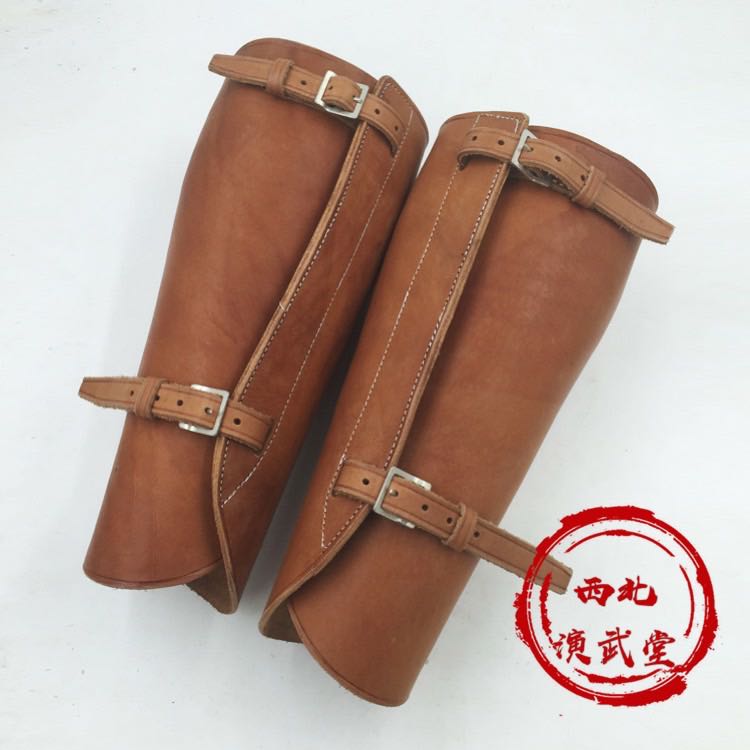 The high quality leg guard of the War of Resistance Army reengrave the school equestrian horse with a repeat cortex primary color yellow leather tie legs