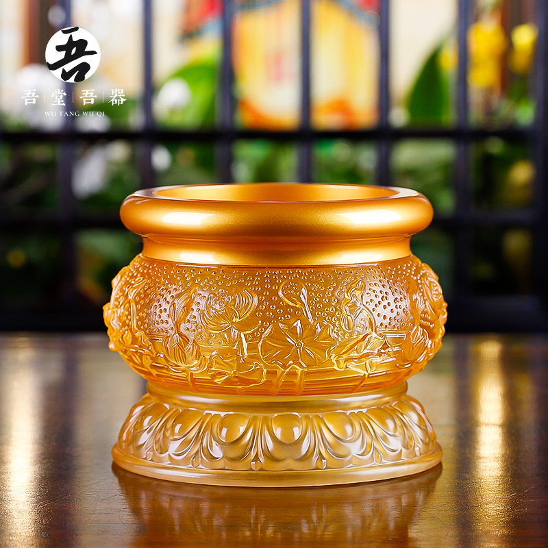 Pure Copper Alloy Glazed Reliefs Lotus Recruiting Treasure House Furnaces For Home Furnaces For Buddhare Incense Stove Burning Incense Stove