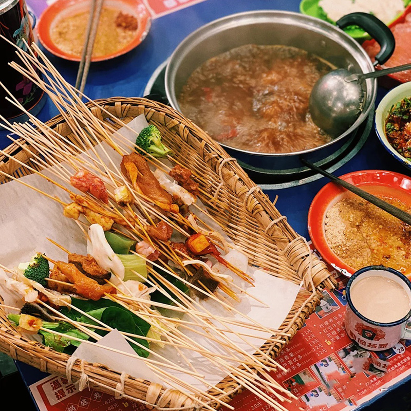 Bowl Bowl Chicken Strings String Bamboo Signature Sign 33cm * 2 5 disposable hot pot Spicy Hot on the side of the road Side stringing and white sign