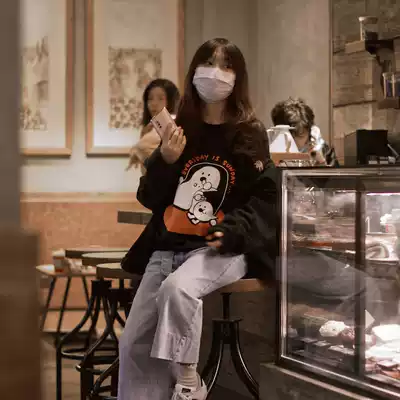 same convenience store weekend movie round neck thick cotton T350g fleece casual winter neutral printing thickened