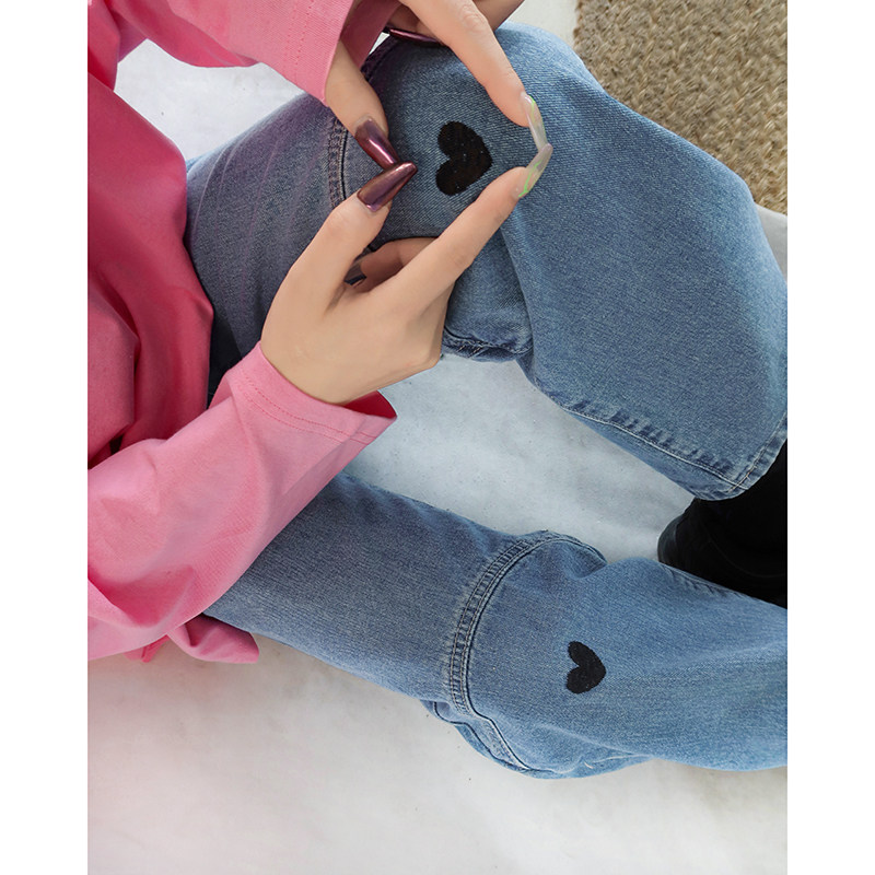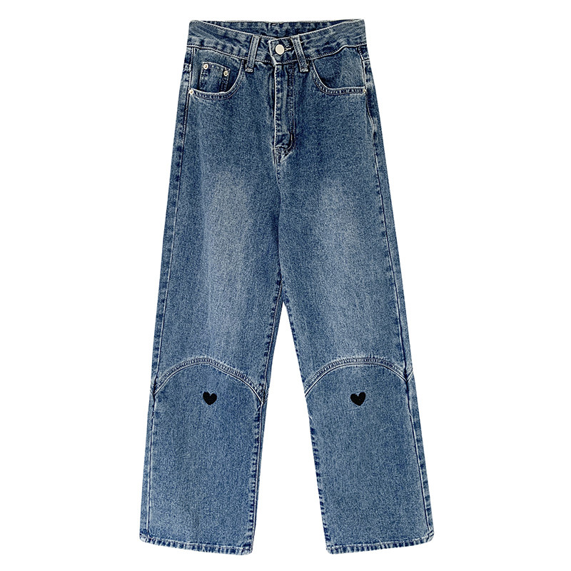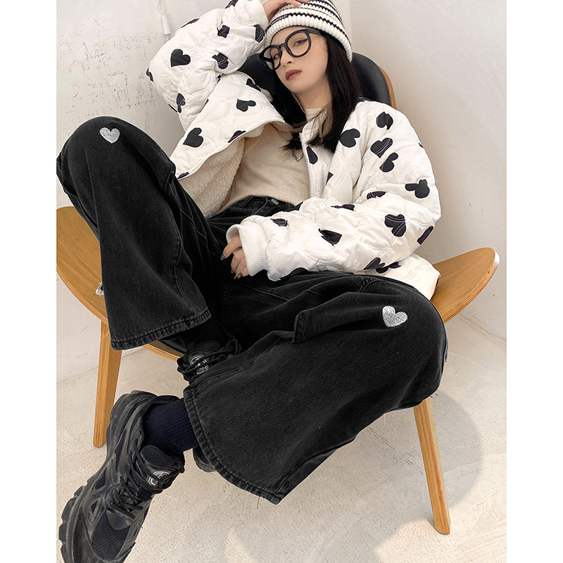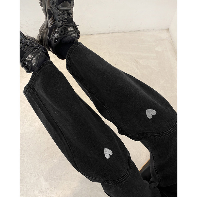 Racing Small Sloth Black Jeans Women Spring Subloving High Street Tide Ins Original Juku Straight Barrel Loose Winter Pants