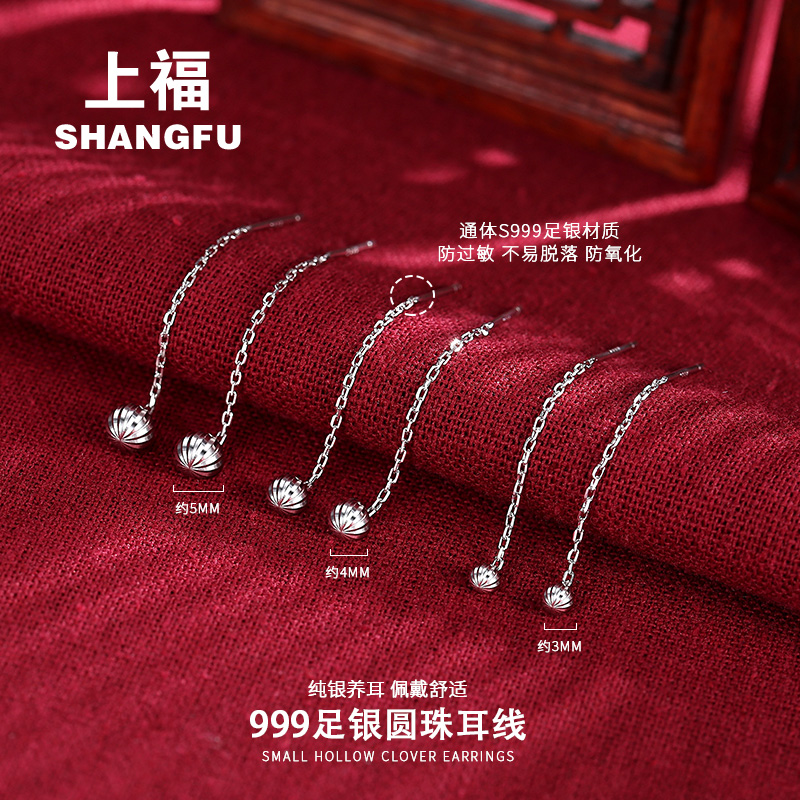 S999 pure silver 5mm white zircons bracelet pair S999 pure silver square wire ear necklace pair S999 pure silver leaf ear necklace pair S999 pure silver T word ear chain pair S999 pure